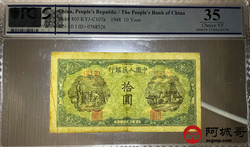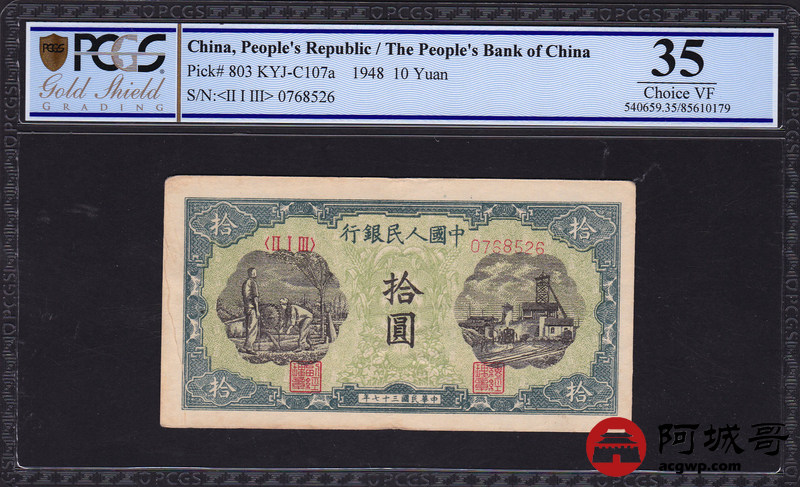 Lot:5 一版 民国37年 拾圆灌田工厂 PCGS 35 号码不带4