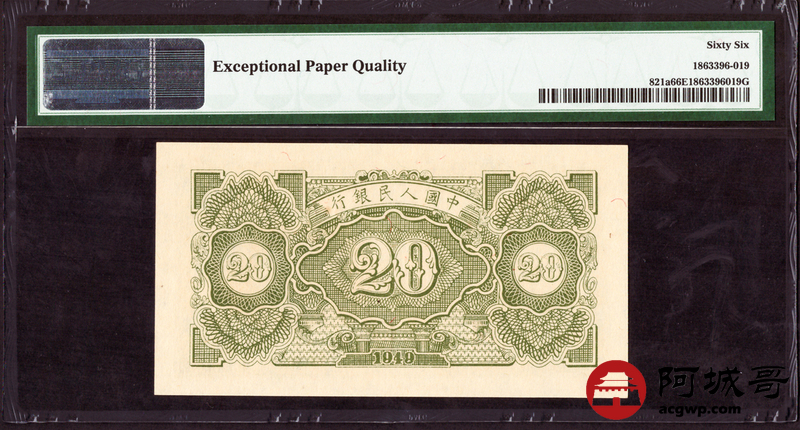 Lot:9 一版 1949年 贰拾圆立交桥 PMG 66EPQ
