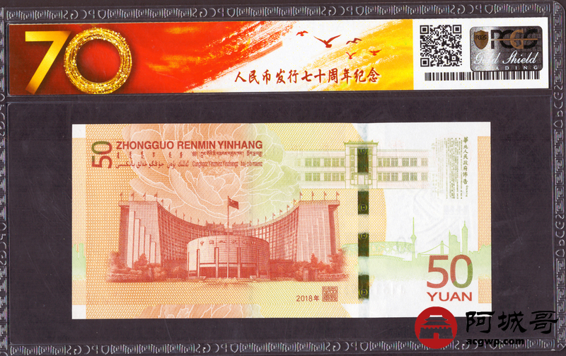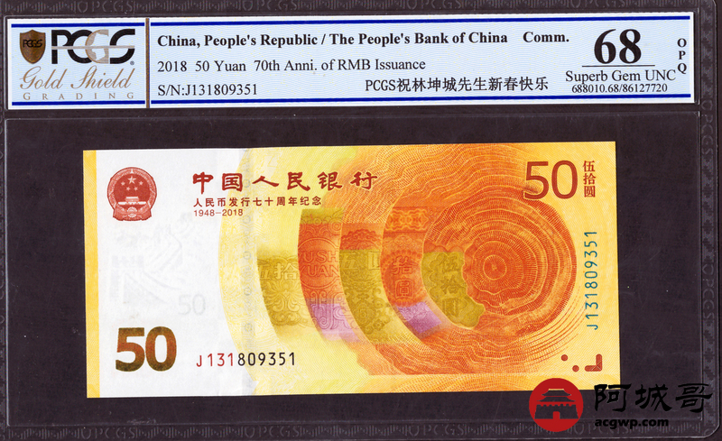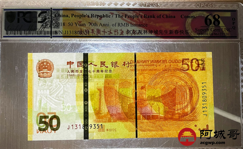 Lot:30 2018年 七十周年伍拾圆纪念币 PCGS 68OPQ
