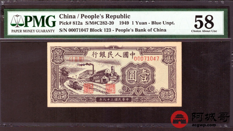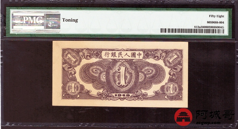 Lot:13 一版 民国38年 工厂壹圆 PMG 58