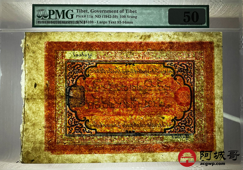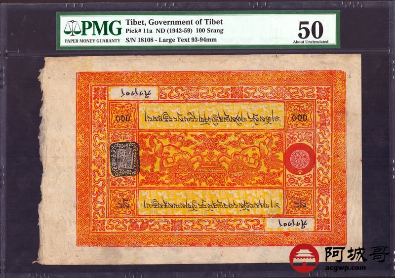 Lot:3 西藏老纸币 原汁原味 100两 PMG 50
