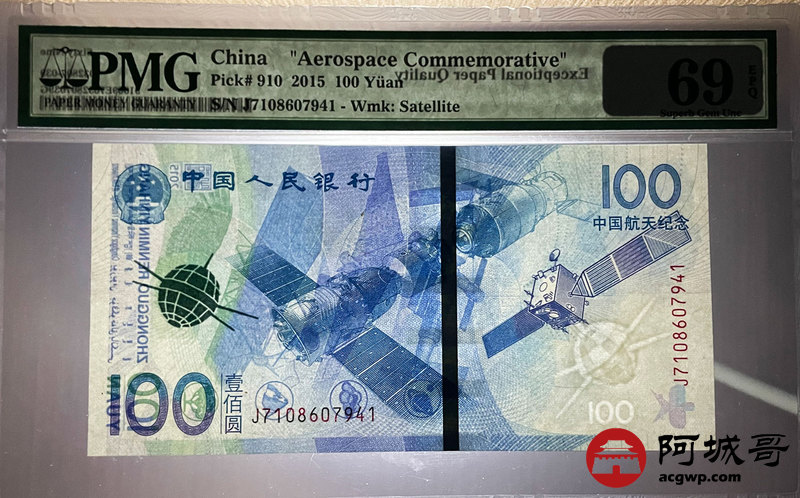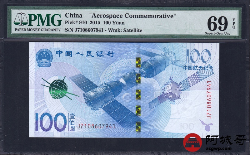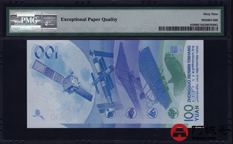 Lot:27 2015年 壹佰圆航天钞 中国人民银行 亚军分PMG 69 EPQ