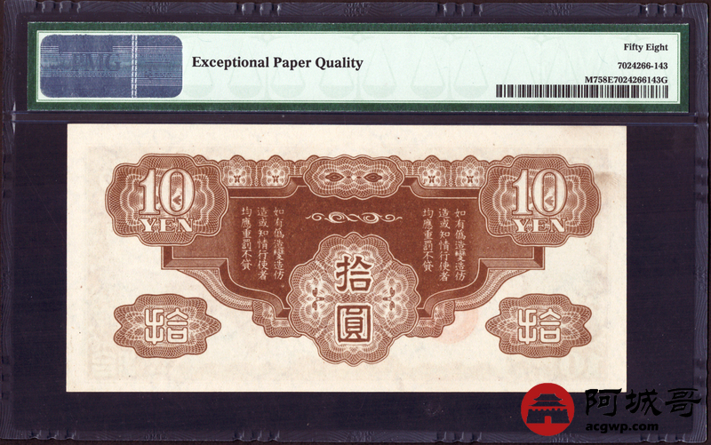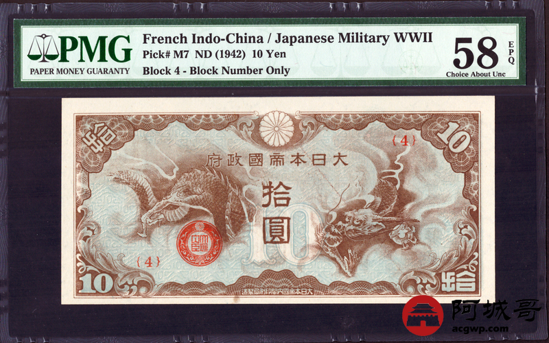 Lot:32 1942年 日本拾圆 PMG 58EPQ