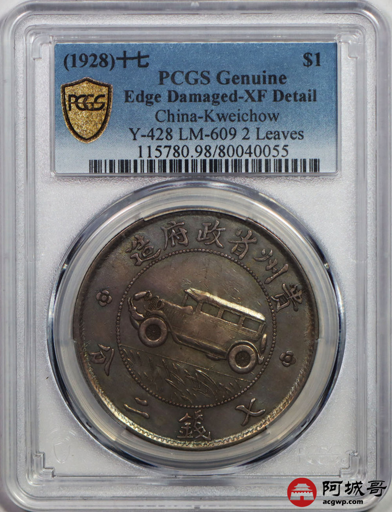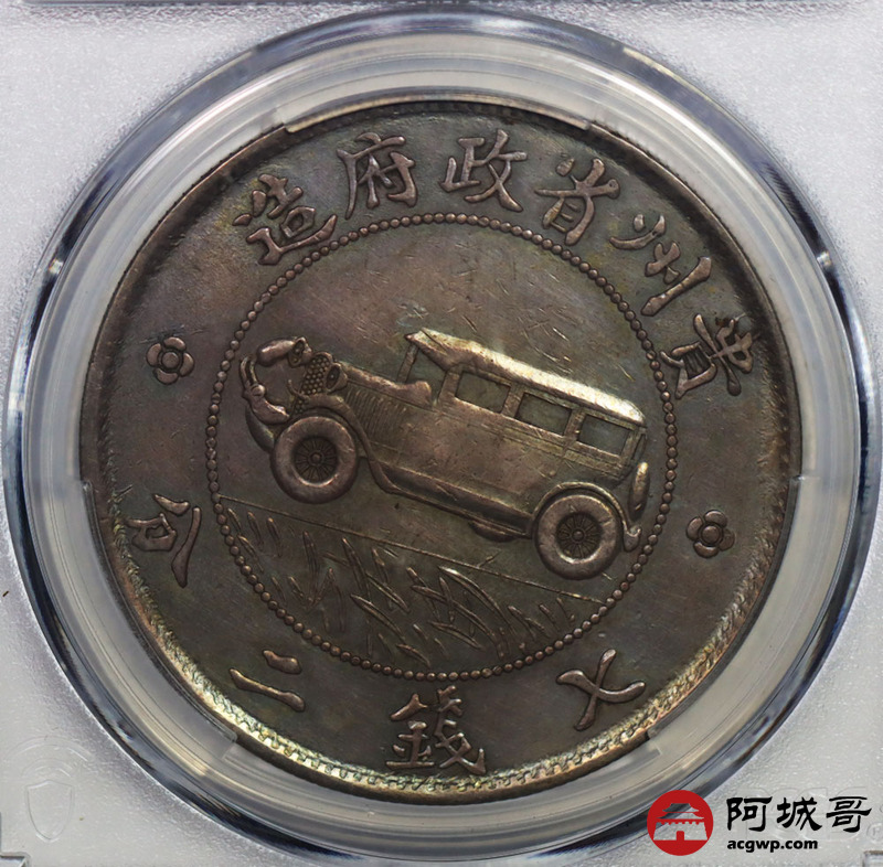 Lot:14 原味 五彩包浆 贵州汽车币 七钱二分 PCGS XF