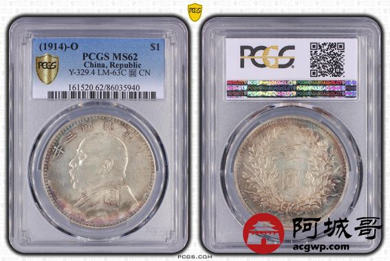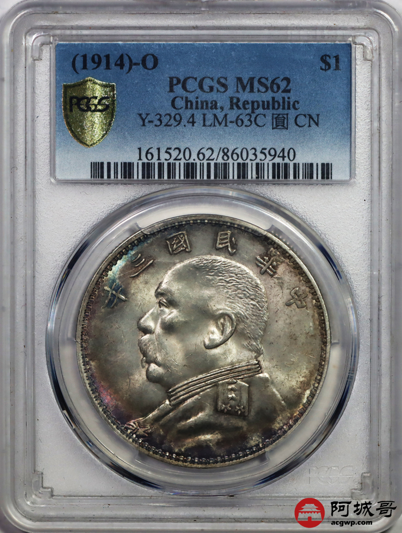 Lot:34 原光 五彩 光 民国三年大 O版 大头 三角 元 PCGS MS 62