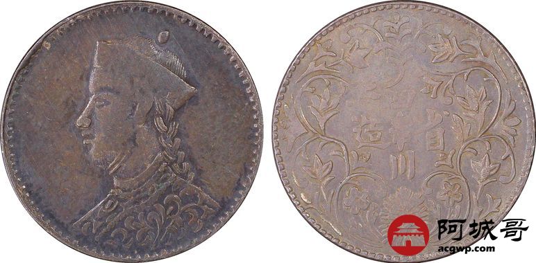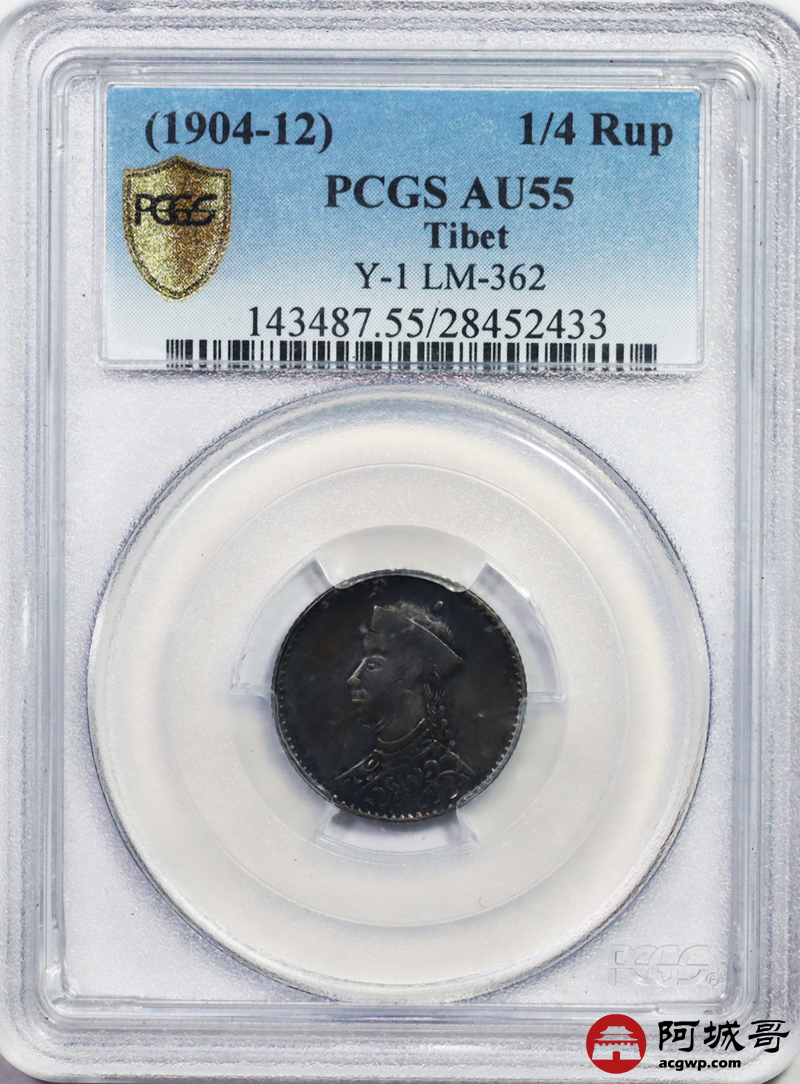 Lot:7 原味 老包浆 四川1/4卢比 PCGS AU 55