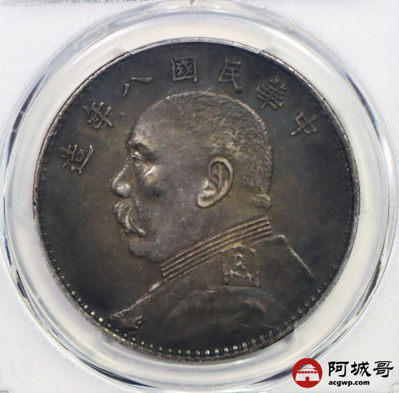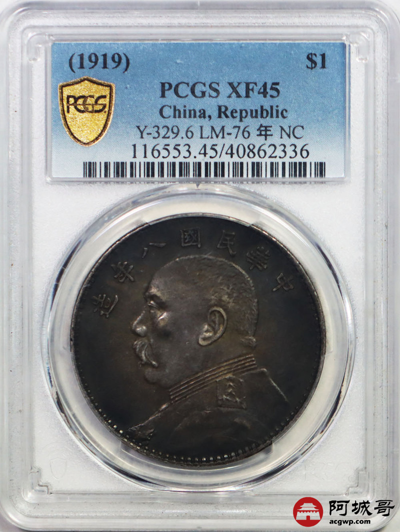 Lot:4 a原味 黑五彩 全深打细节完美 民国八年大头 壹元 PCGS XF 45