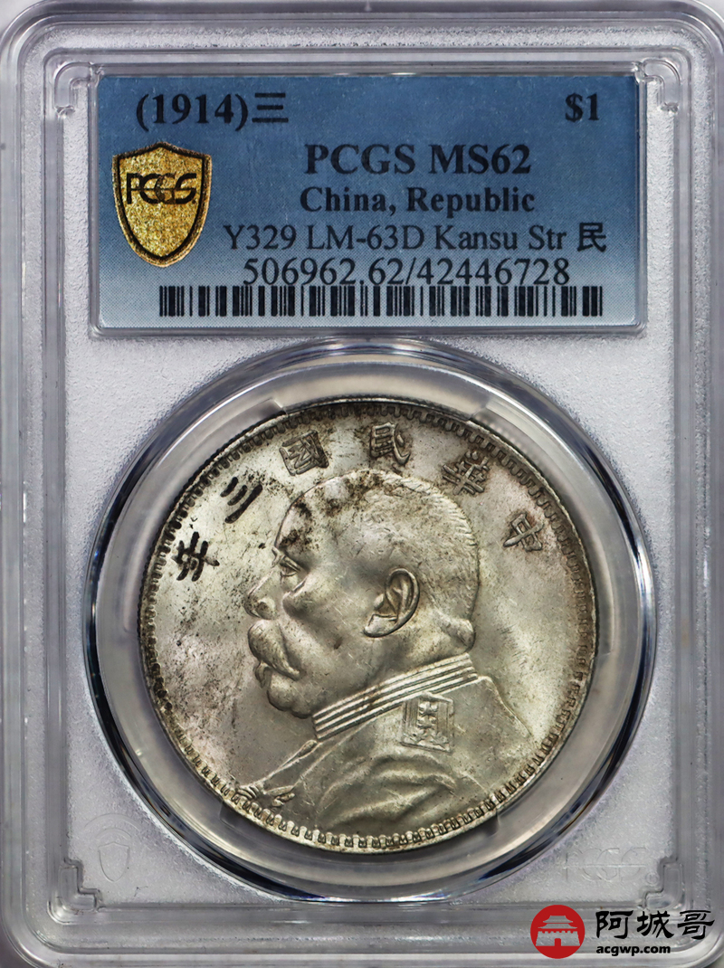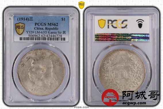 Lot:5 原光 甘肃大头壹圆 大刀年 PCGS MS62