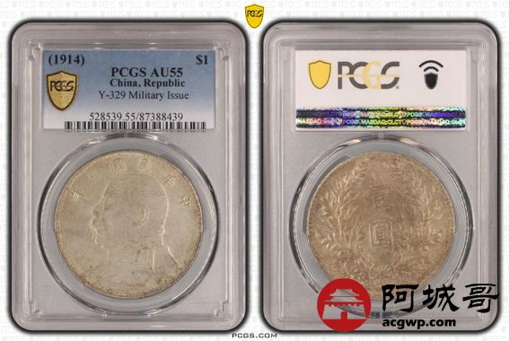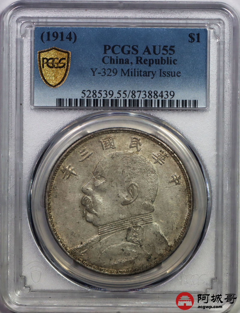 Lot:33 带光老油彩 军阀版三年大头壹圆 亚军分PCGS AU55