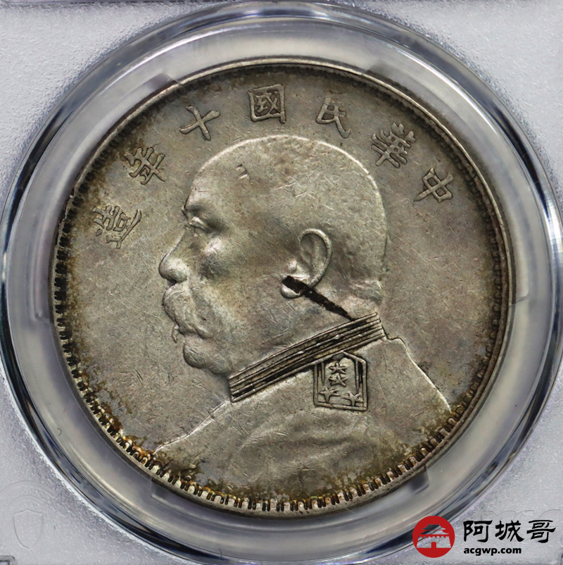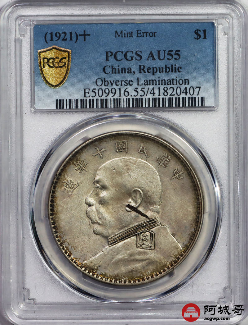 Lot:4 油彩转光 错版minterror十年大头壹圆 PCGS AU55