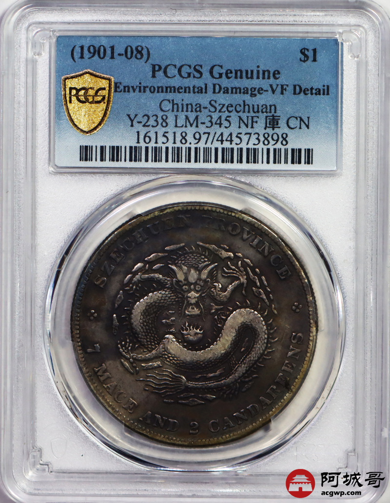 Lot:10 压箱底酱五彩 四川光绪七钱二分 PCGS VF
