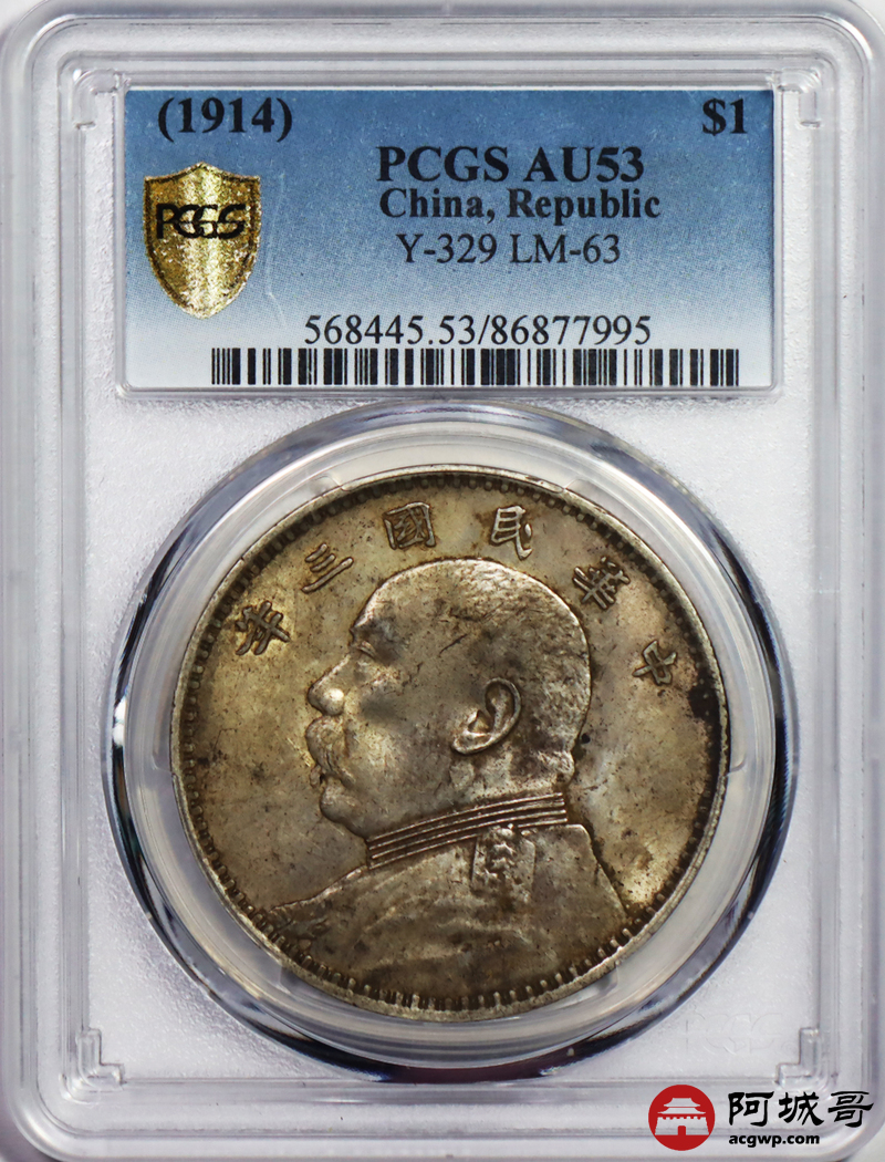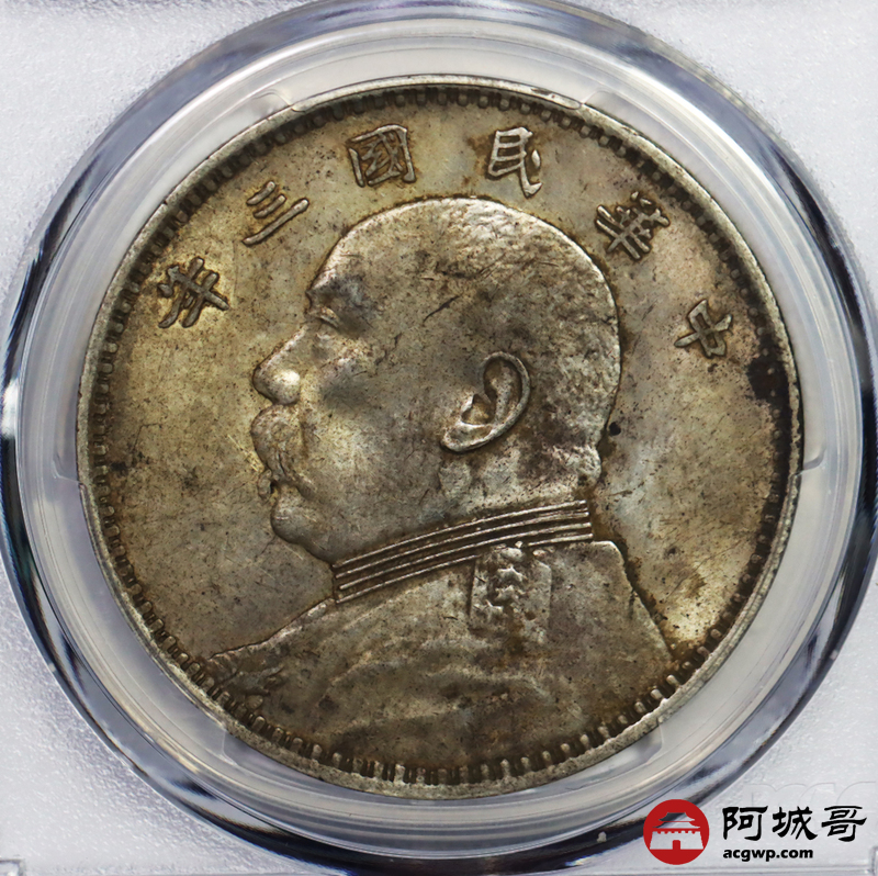 Lot:27 原味黄油包浆底光三年大头壹圆 挑华 PCGS AU53