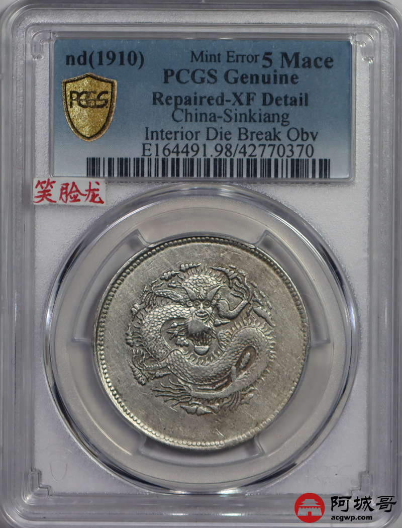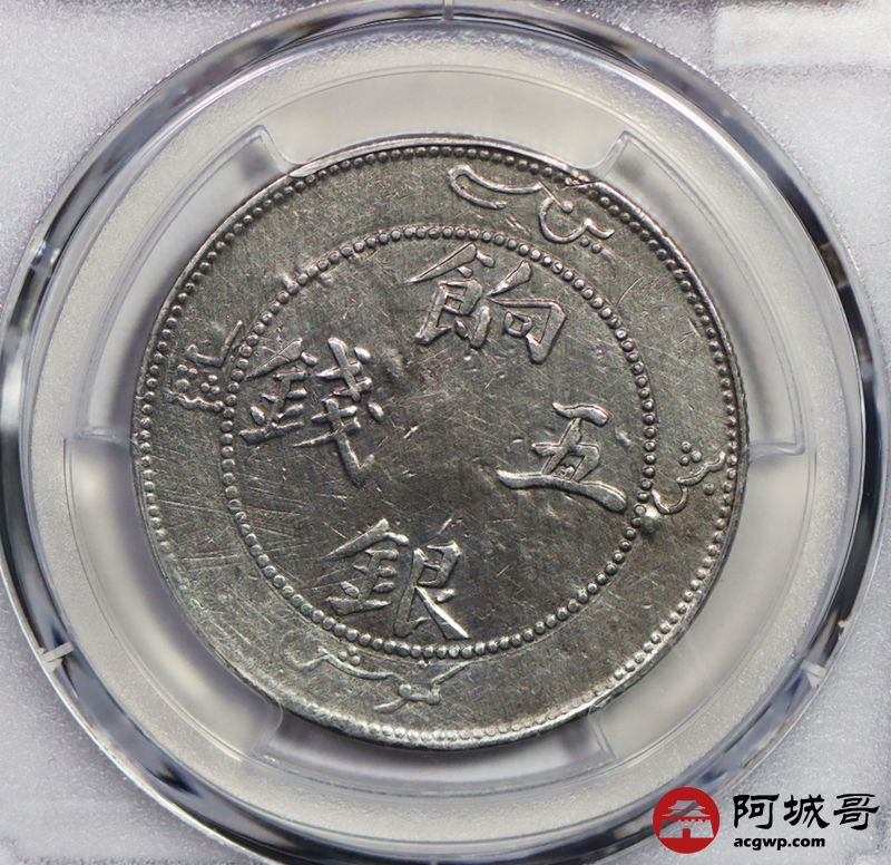 Lot:35 原味 新疆 饷银 五钱笑面龙 错版 PCGS XF
