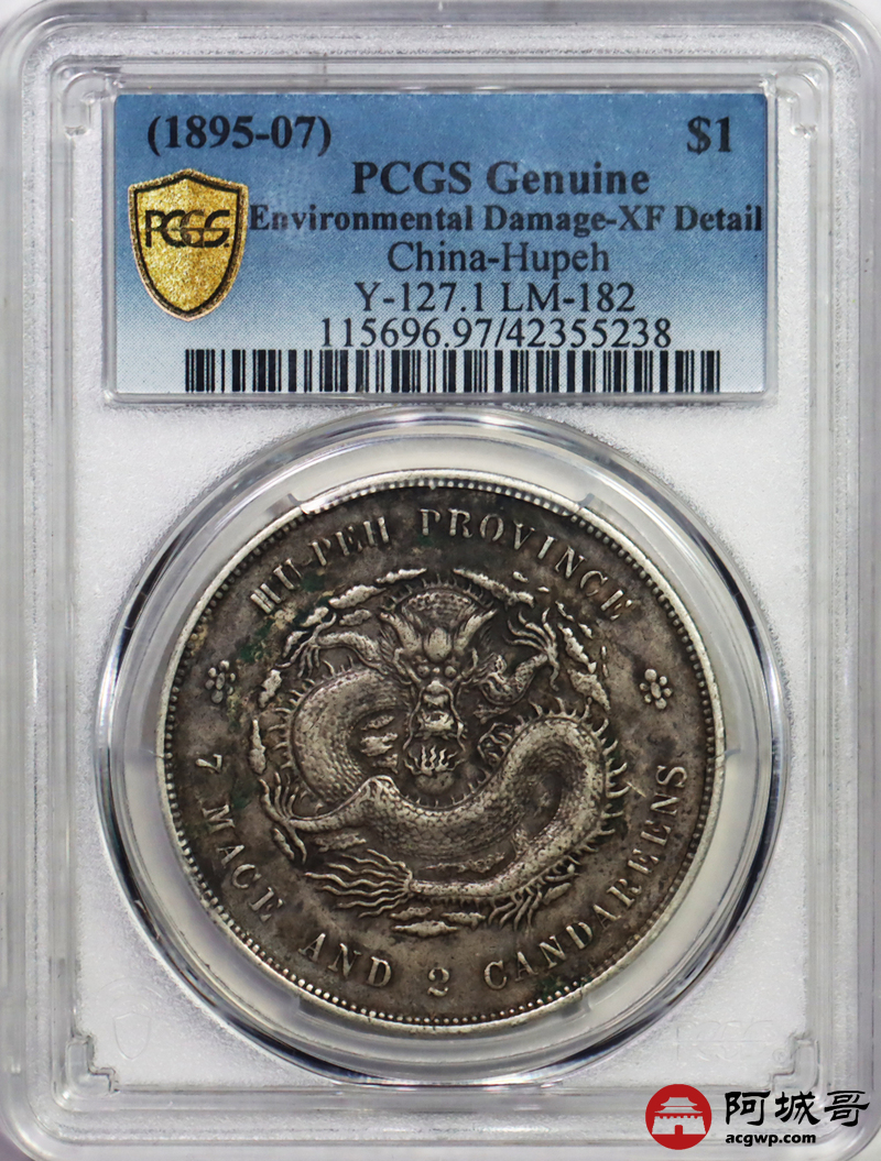 Lot:30 原味 包浆 窖藏 湖北 光绪 龙洋 七钱二分 PCGS XF