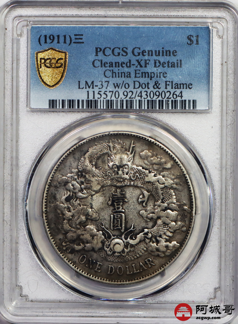 Lot:33 原味 包浆 大清宣三 壹元 PCGS XF