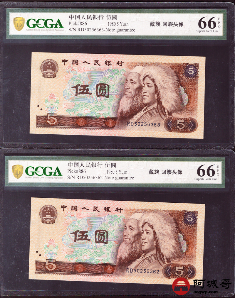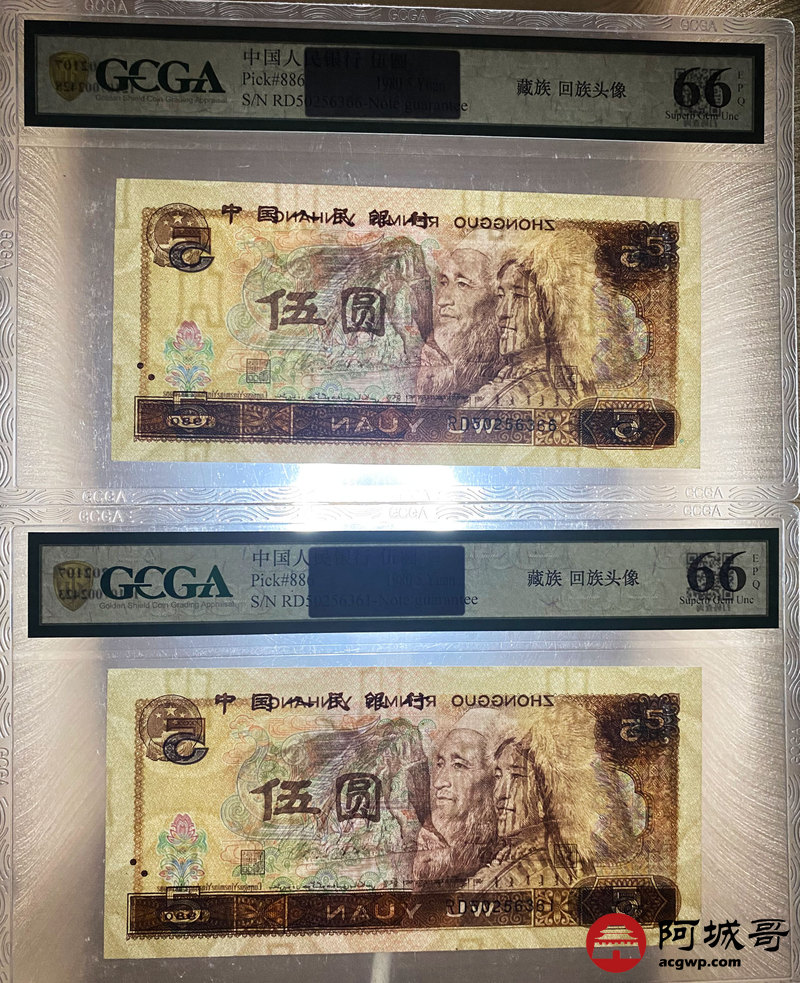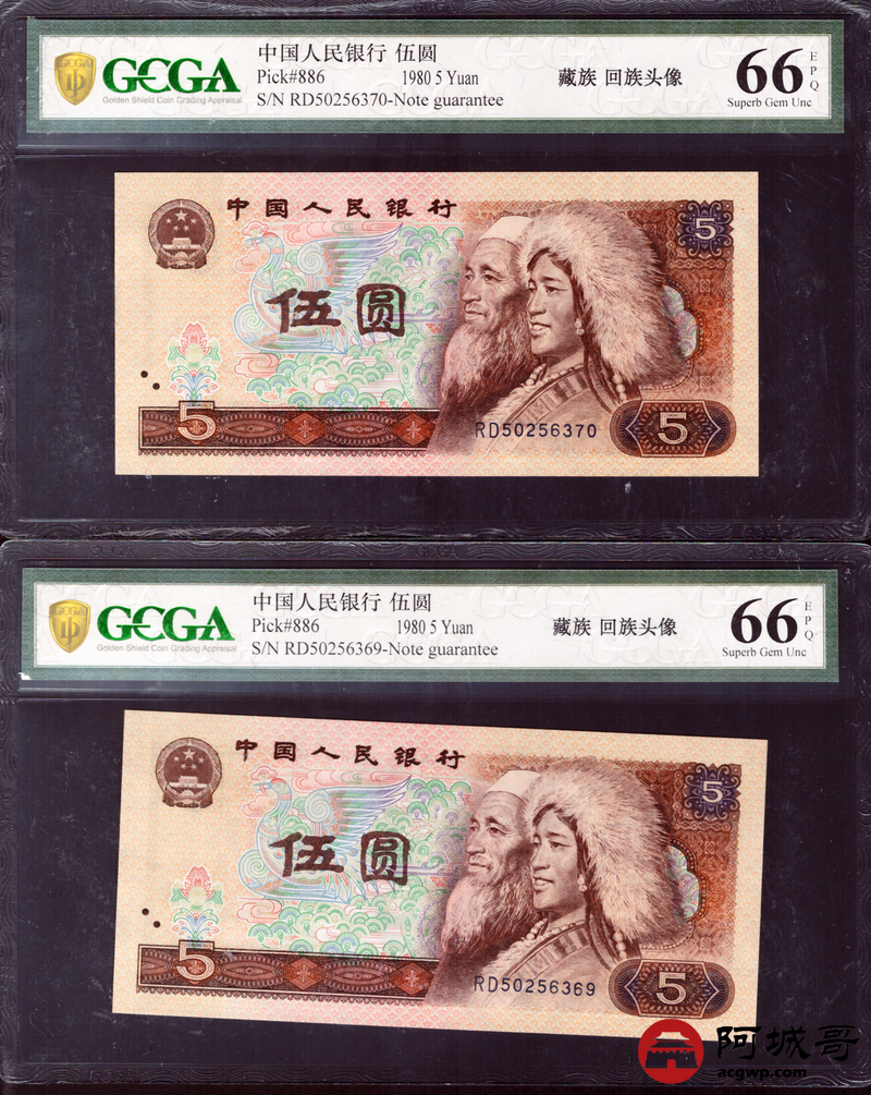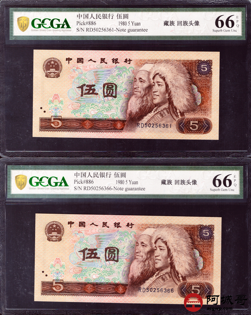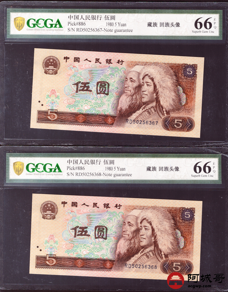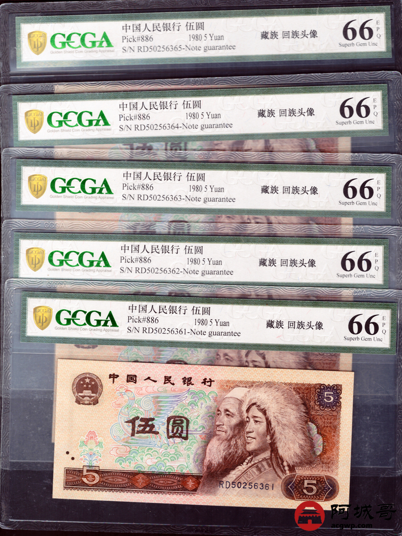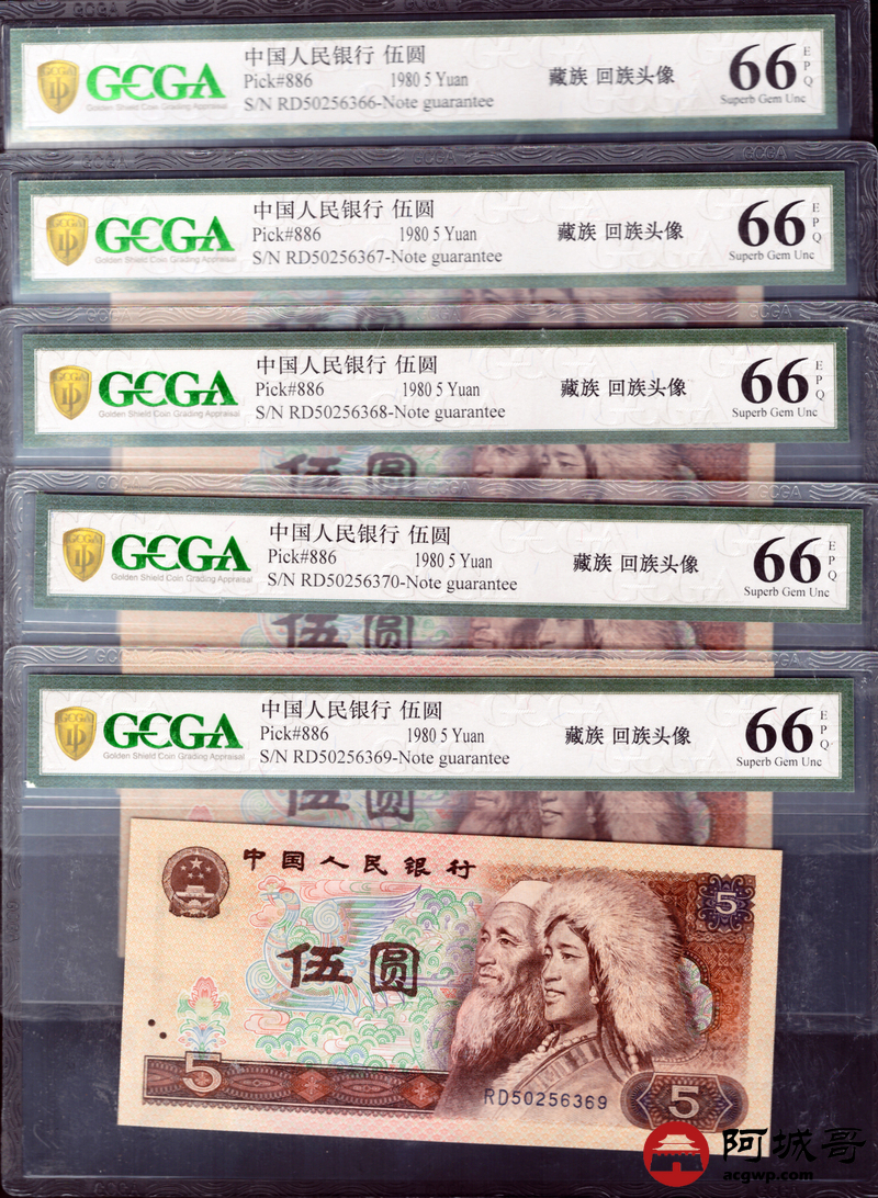 Lot:18 四版 1980年伍圆 GCGA 66EPQ 十枚连号一组 好号无47