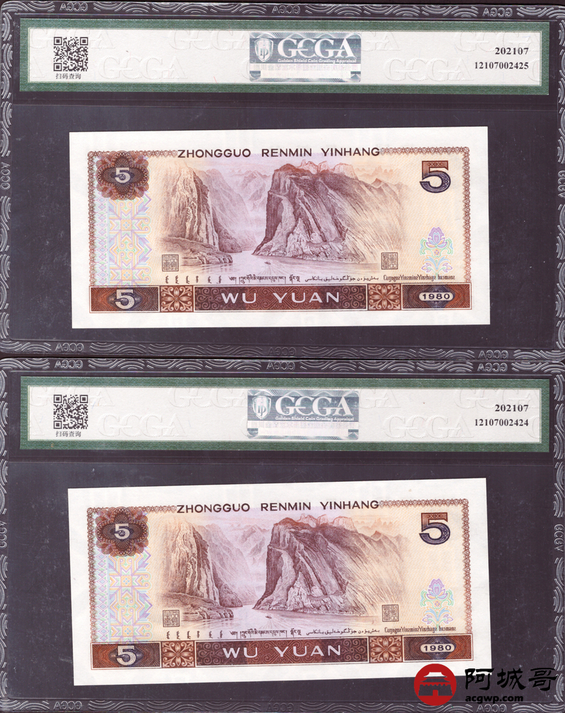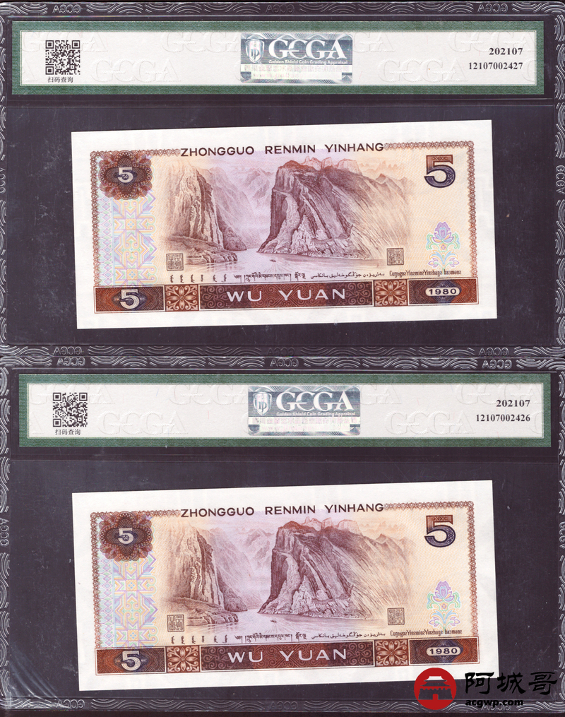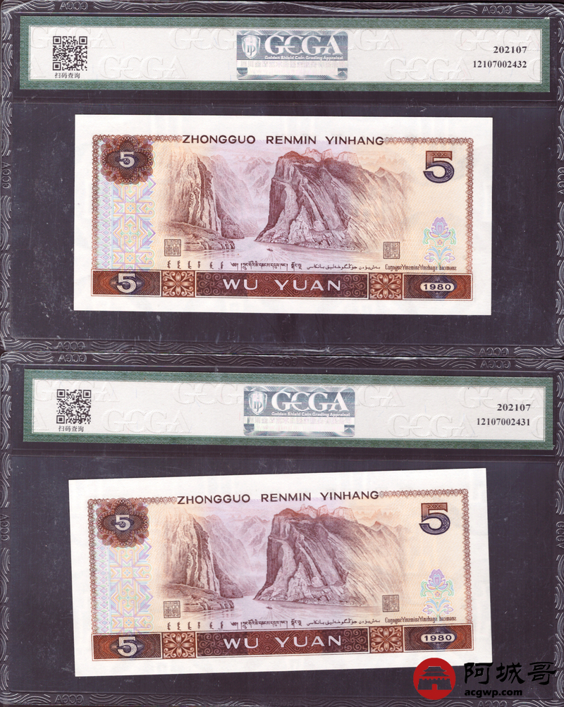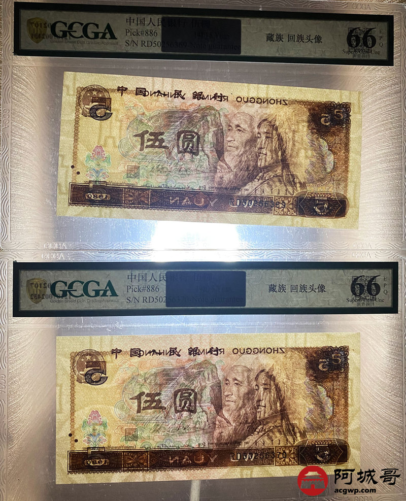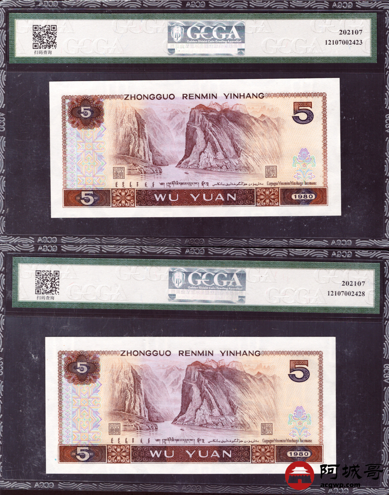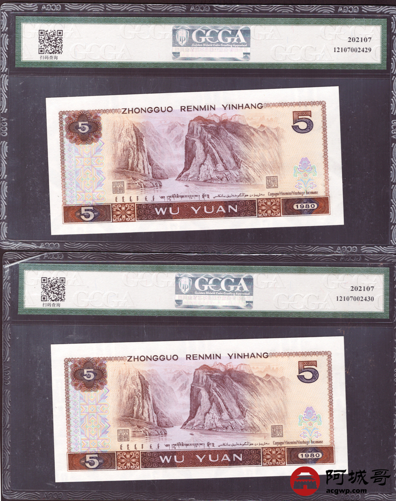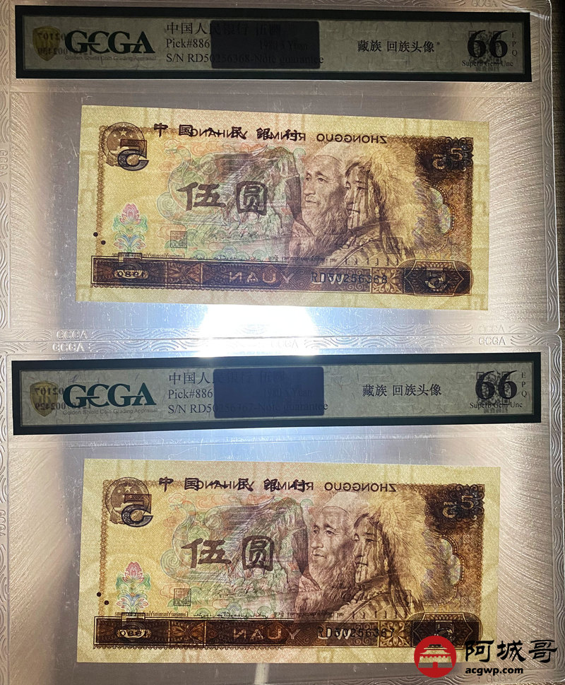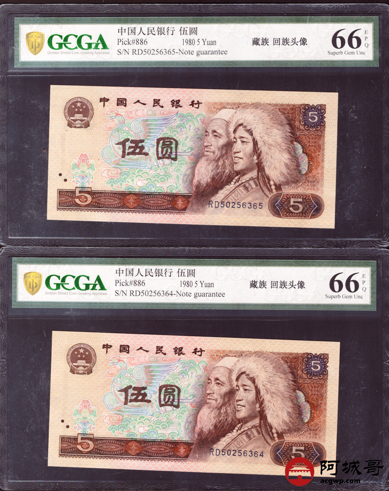 Lot:18 四版 1980年伍圆 GCGA 66EPQ 十枚连号一组 好号无47