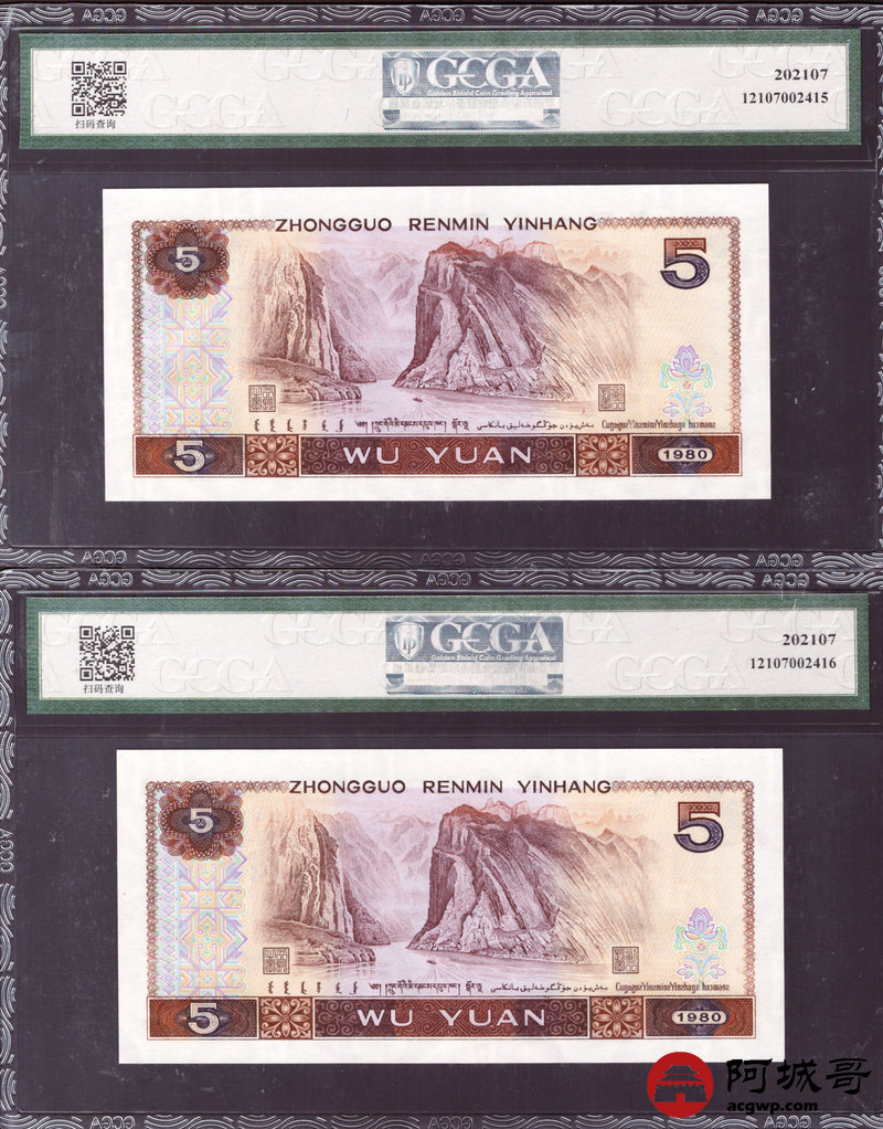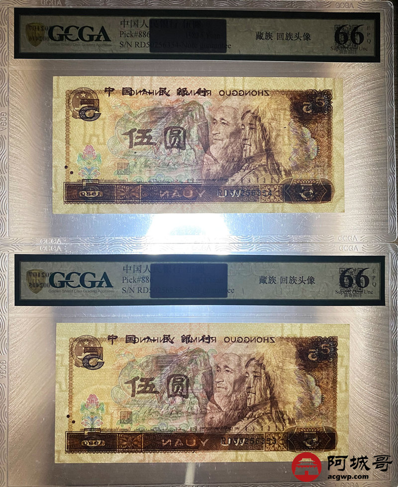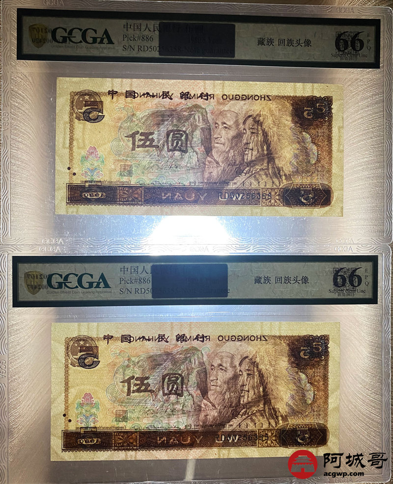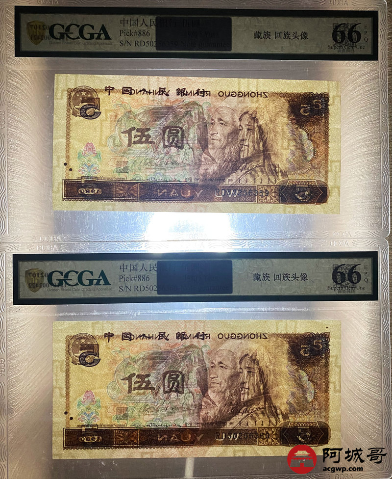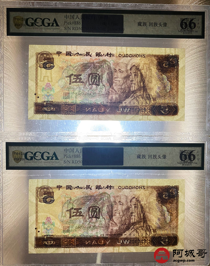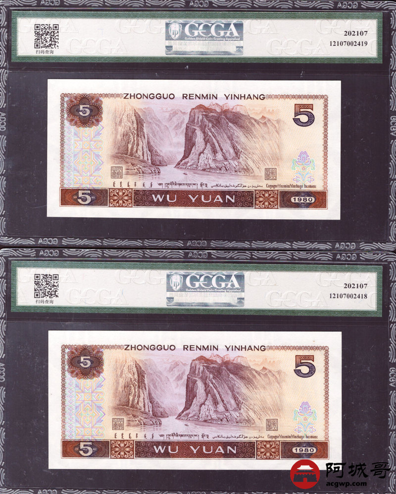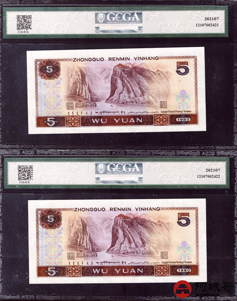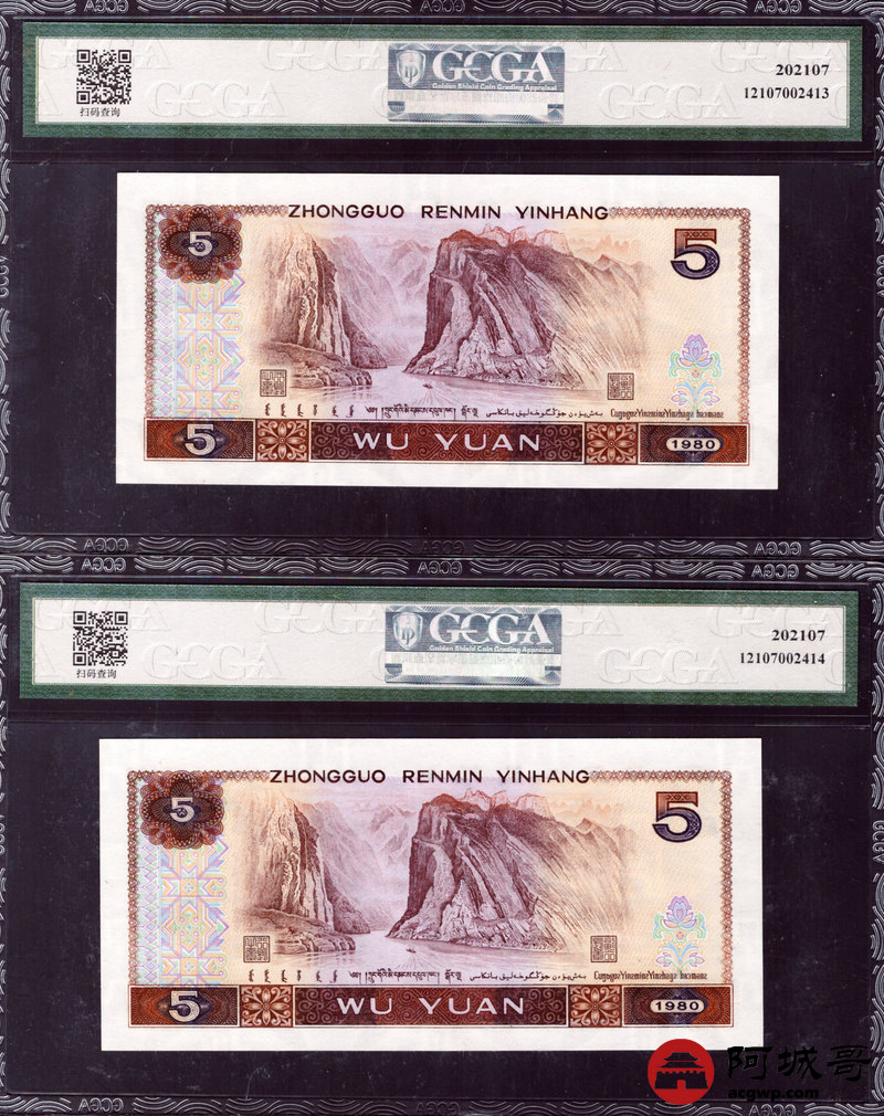 Lot:17 四版 1980年伍圆 GCGA 66EPQ 十枚连号一组 好号无47