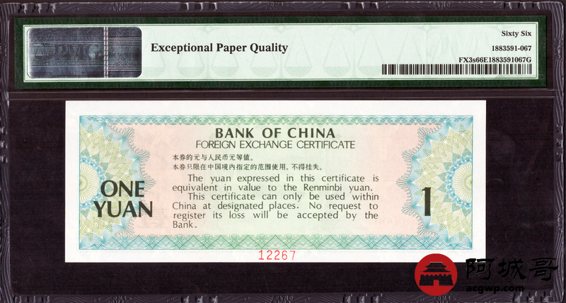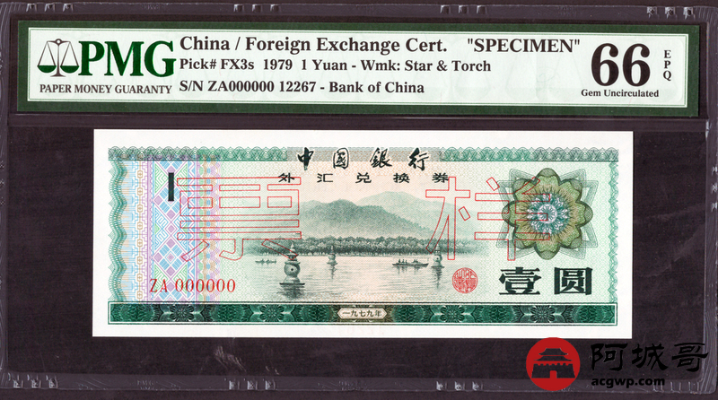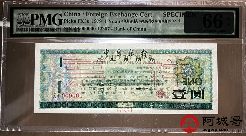 Lot:27 1979年 壹圆 外汇券票样 PMG 66EPQ