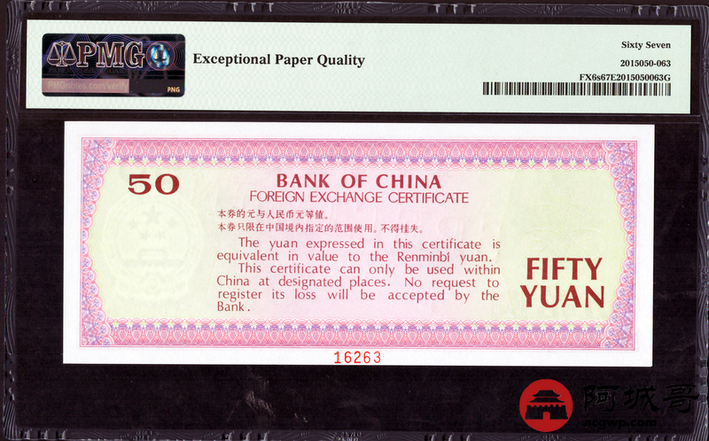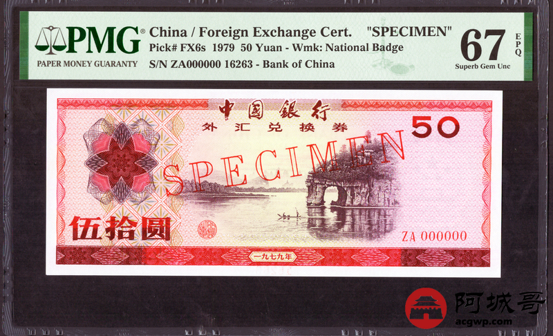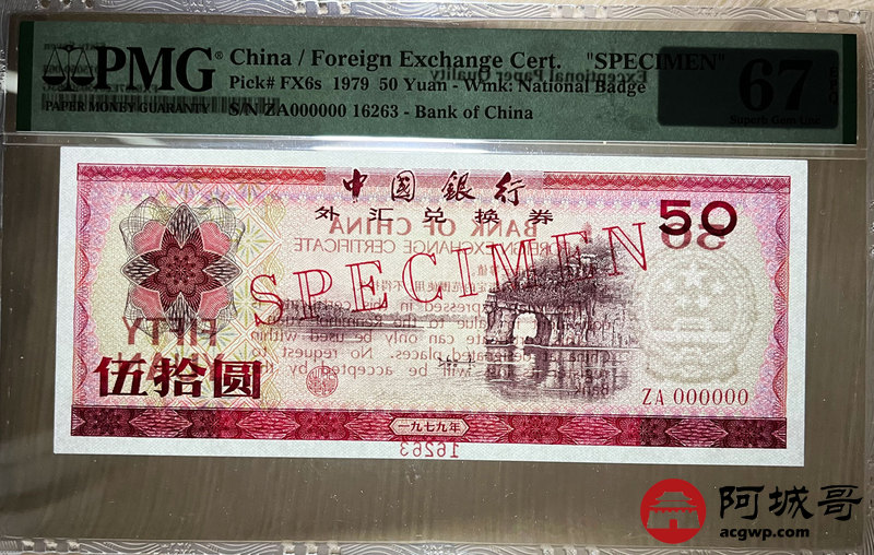 Lot:21 1979年 伍拾圆 外汇券票样 PMG 67EPQ
