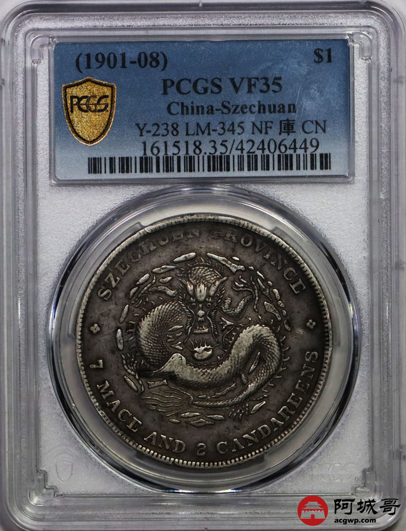 Lot:32 原味 包浆 四川 光绪龙洋 七钱二分 PCGS VF 35