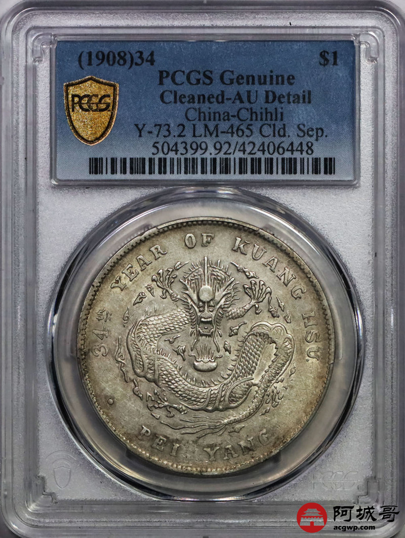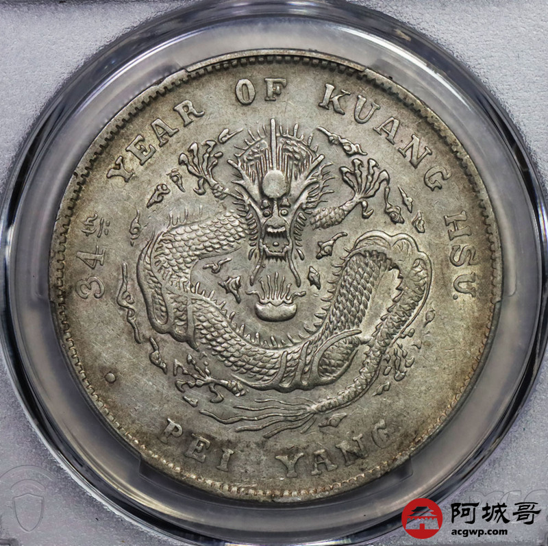 Lot:4 原味 底光 淡彩 北洋34年 龙洋 七钱二分 PCGS AU 开云
