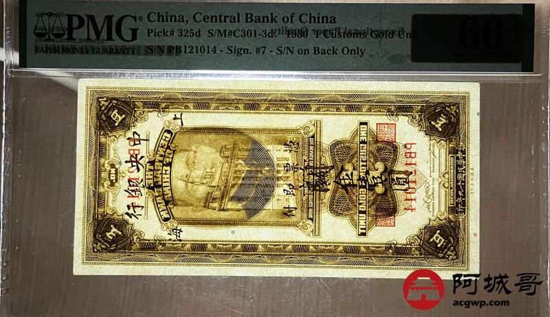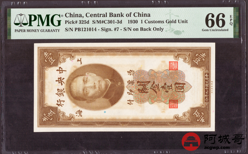 Lot:6 民国19年 壹圆 中央银行 地名上海 PMG 66EPQ