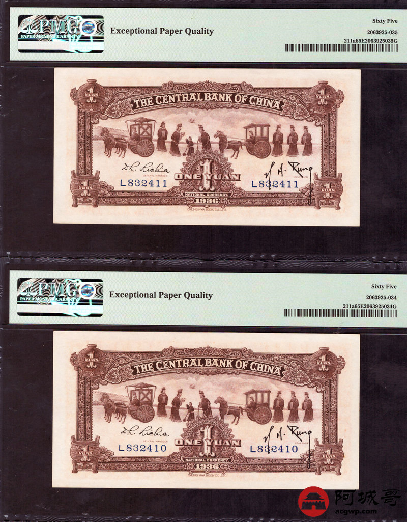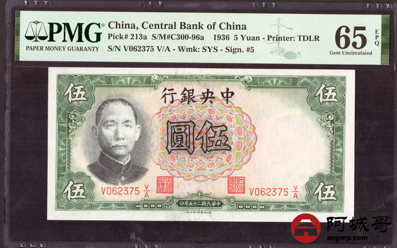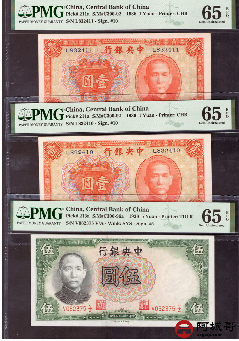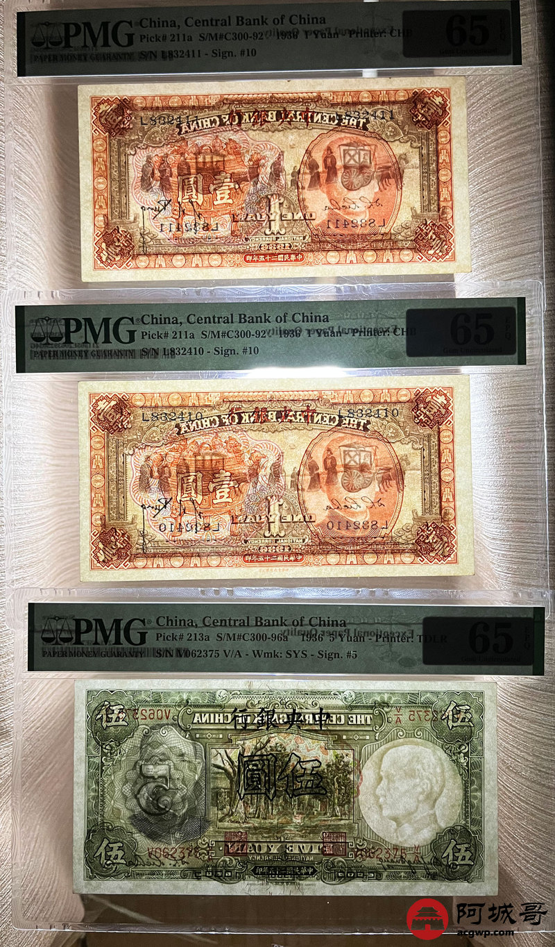 Lot:29 民国25年 中央银行壹圆 、伍圆 PMG 65EPQ 3张