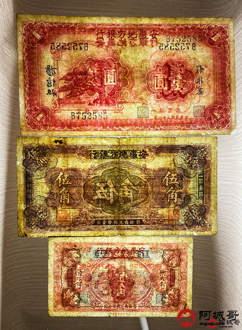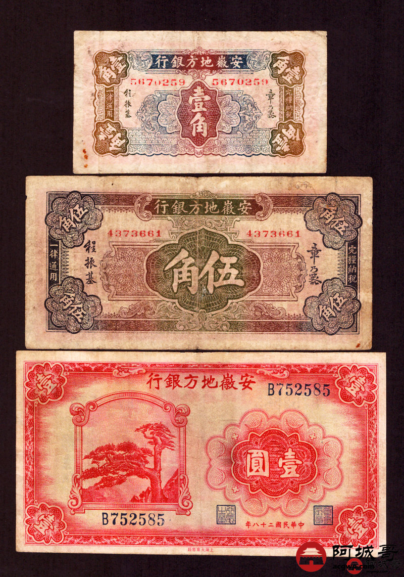Lot:32 安徽地方银行 壹角、伍角、壹圆 78至88成新 三张