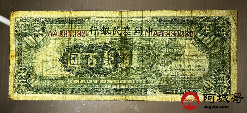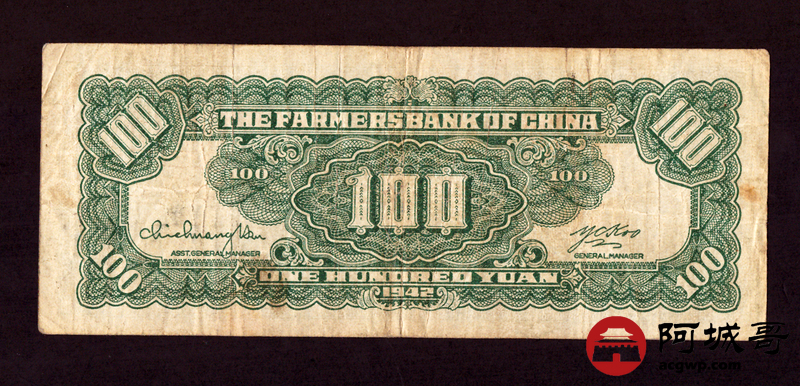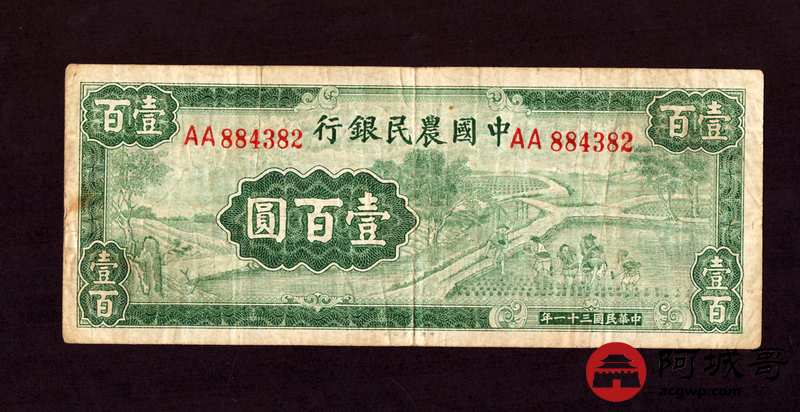 Lot:8 中国农民银行 民国31年 壹佰圆 88成新