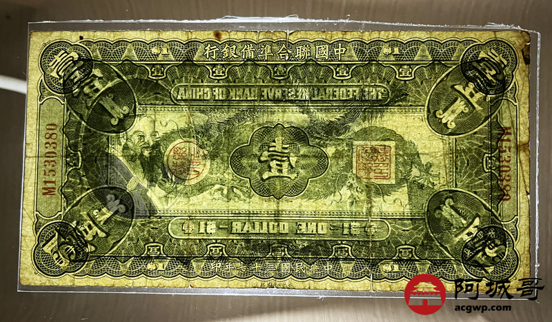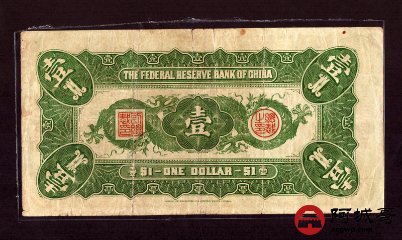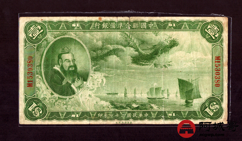 Lot:26 民国二十七年大龙 壹圆 中国联合准备银行 76成新