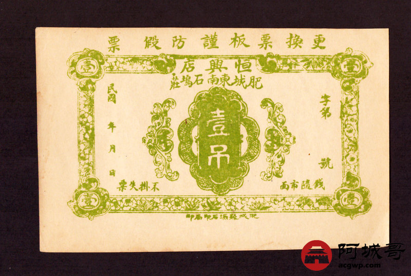 Lot:29 民国时期 恒兴店 壹吊 92成新