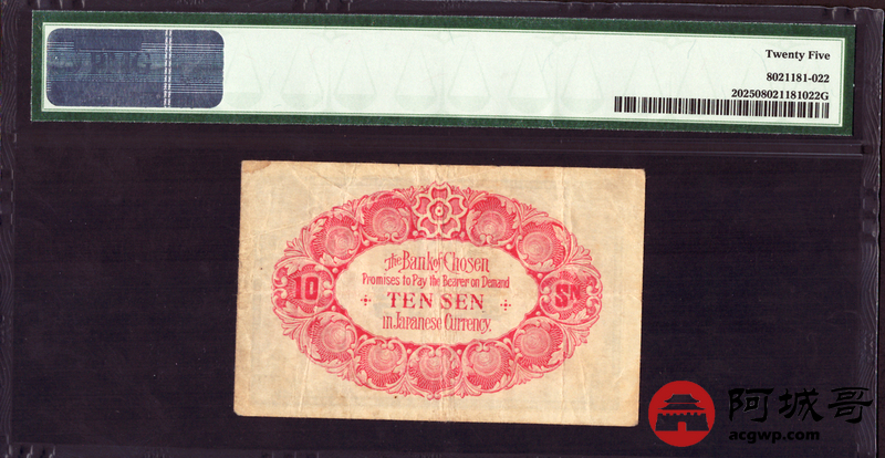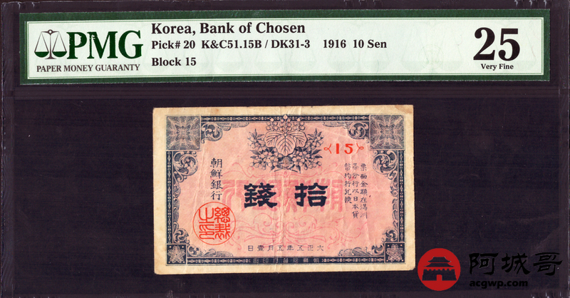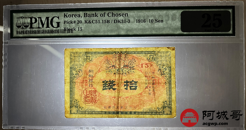 Lot:17 大正五年 拾钱 朝鲜银行 PMG 25
