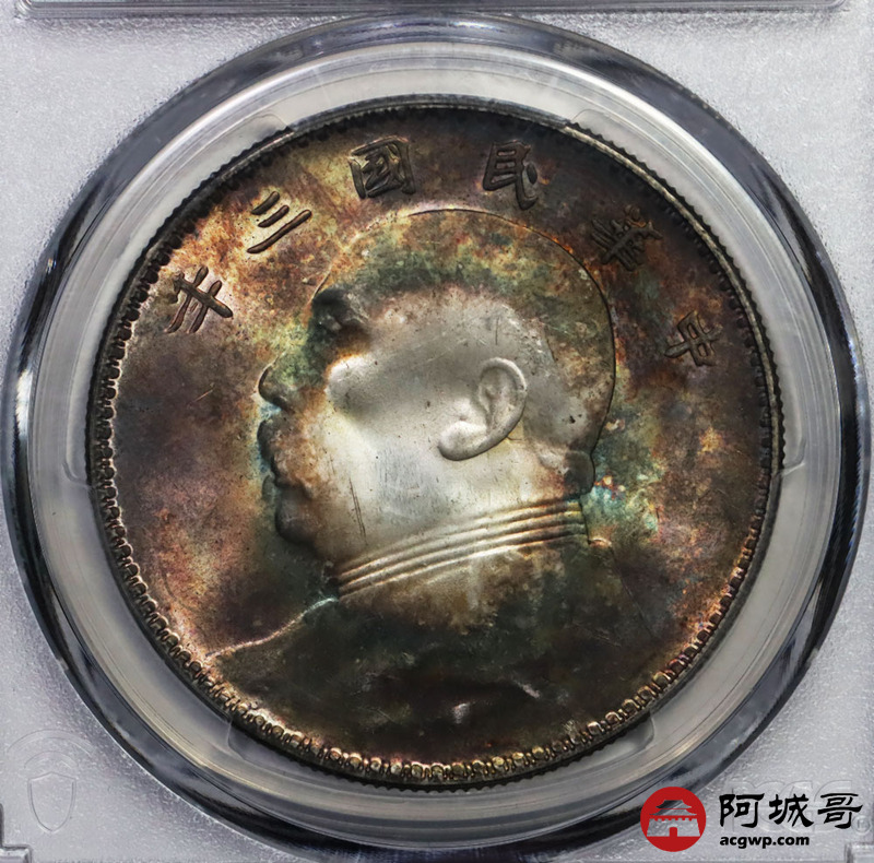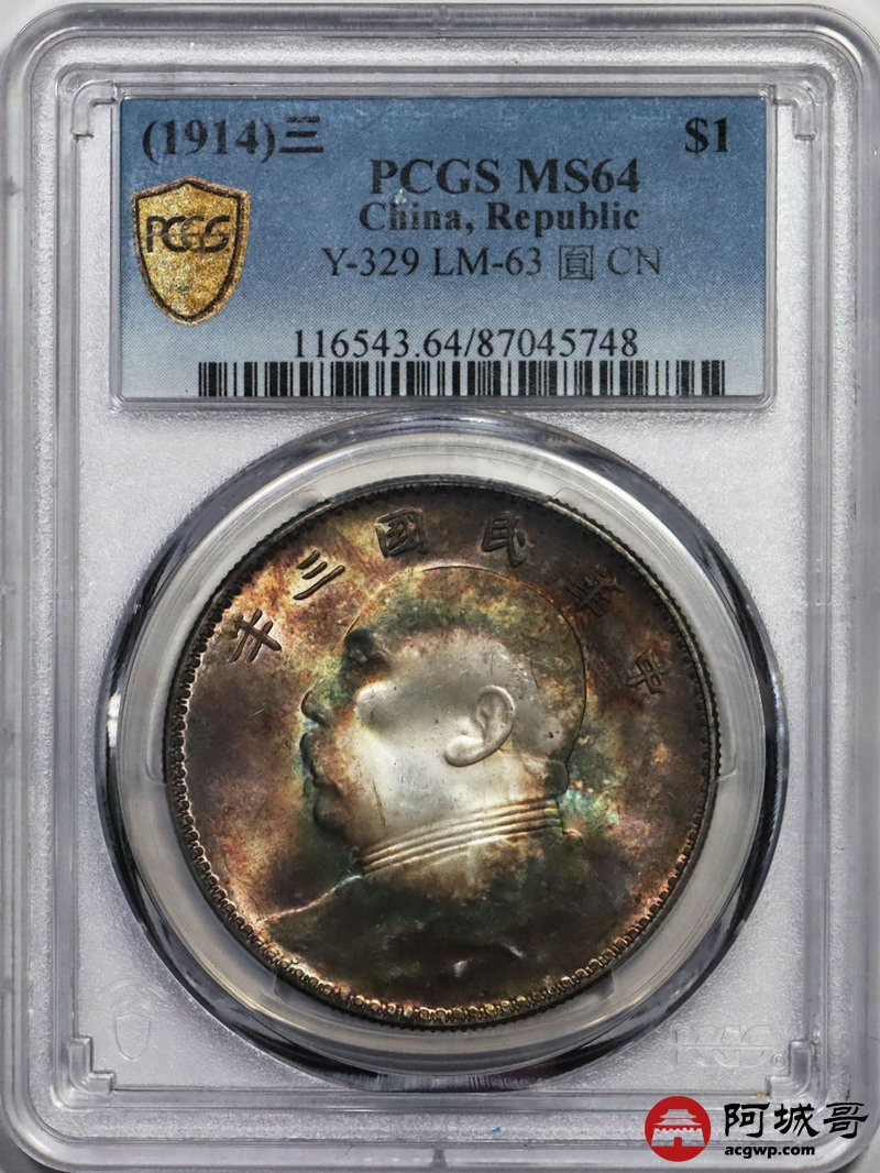 Lot:15 原光 环五彩 民国三年大头 三角元 PCGS MS 64