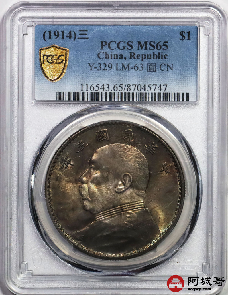 Lot:10 原光 五彩 转光 民国三年大头 三角元 壹元 PCGS MS 65