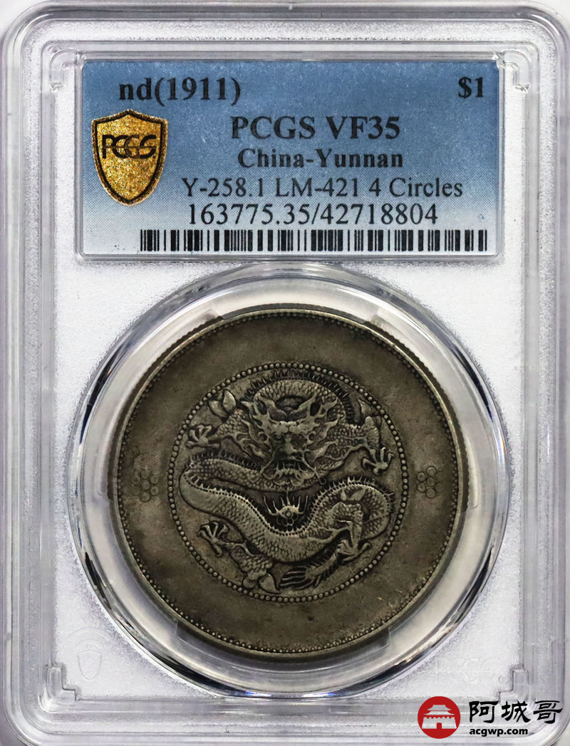 Lot:35 原味 老包浆 云南大困龙洋 七钱二分 PCGS VF 35