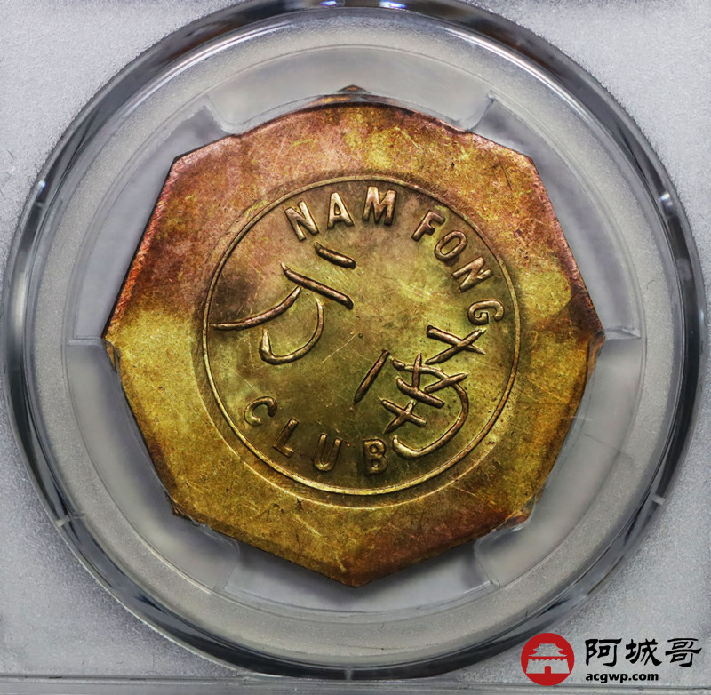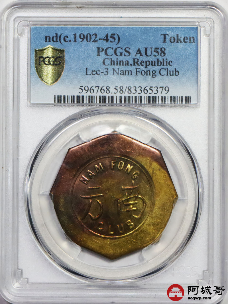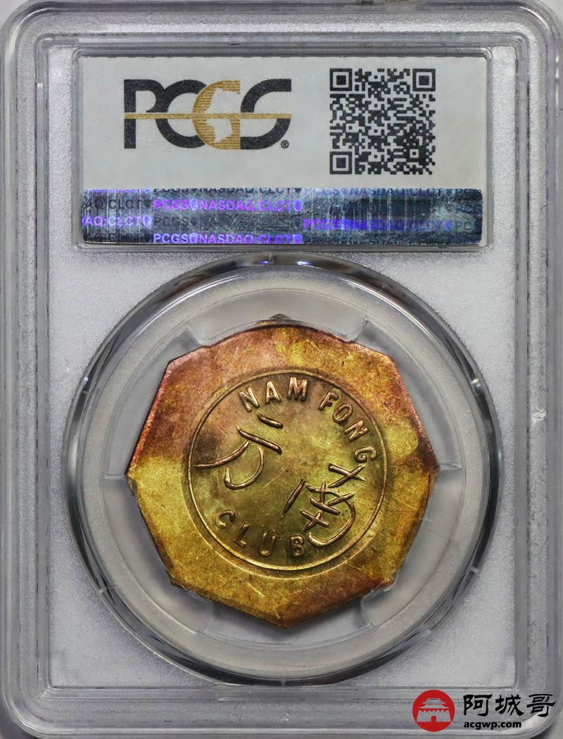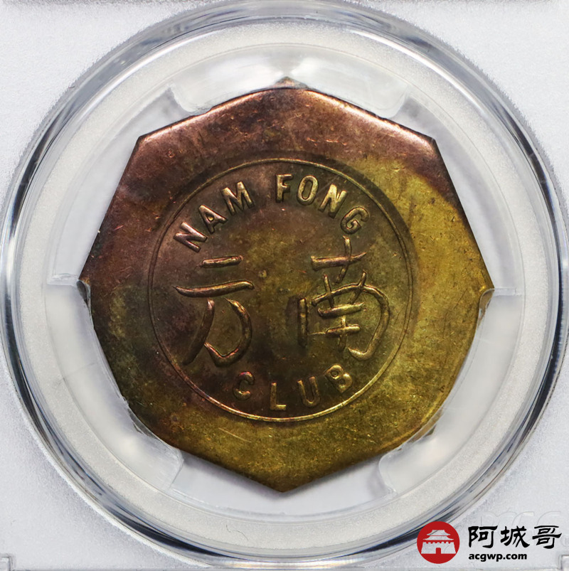 Lot:13 五彩转光老味道 天津法租界南方俱乐部DU场代用币 罕见八边形品种 高面值 PCGS AU58