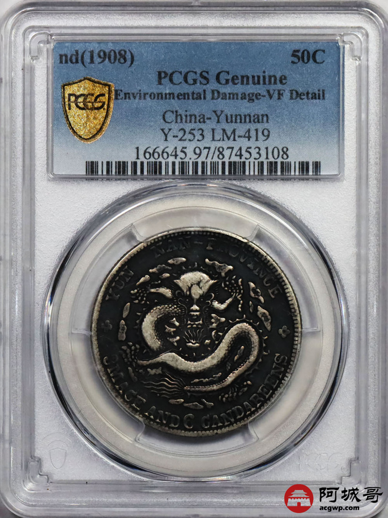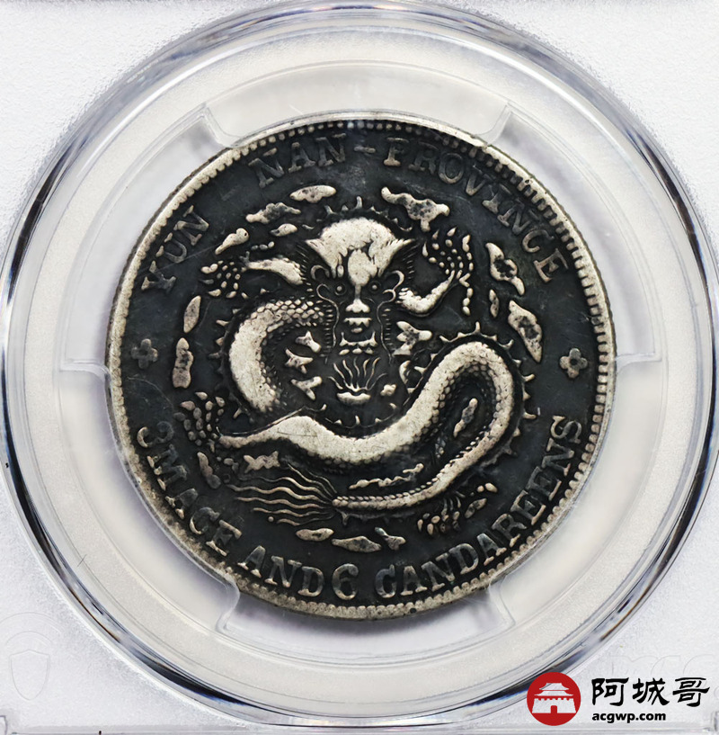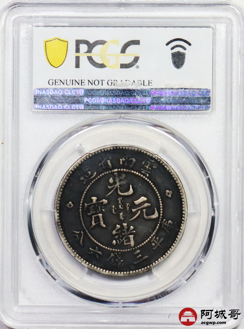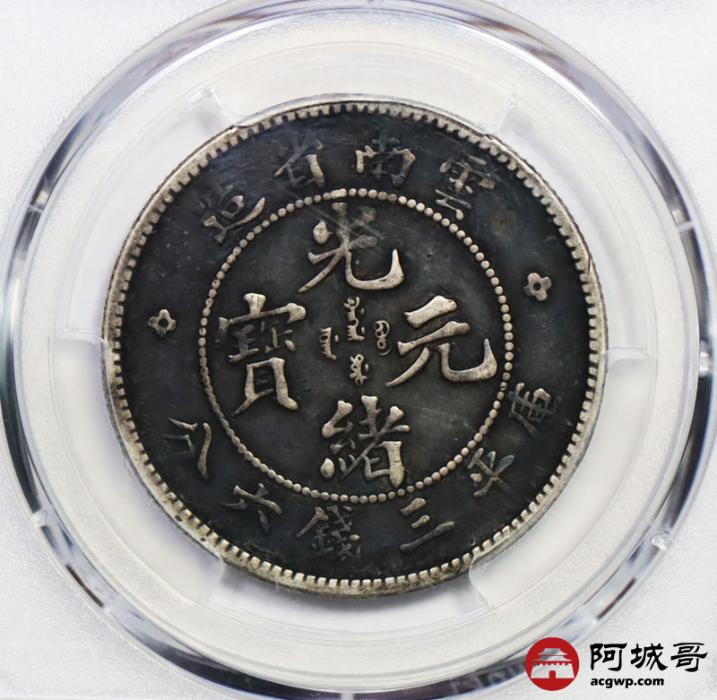 Lot:26 全深打入骨黑包浆 老云南光绪三钱六分 PCGS VF