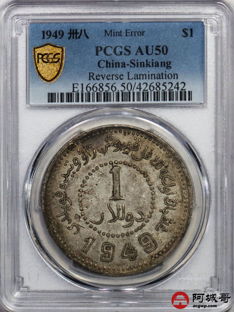 Lot:19 原味 新疆 1949壹元 错版 PCGS AU 50