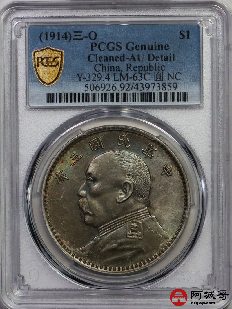 Lot:6 a原味 包浆 民国三年大头壹元O版壹元 PCGS AU