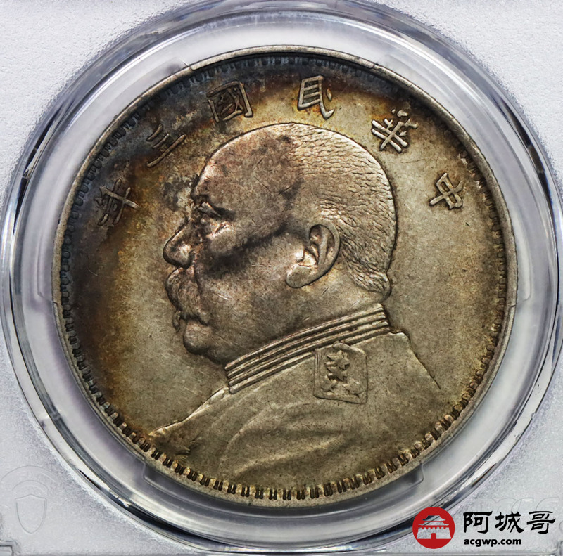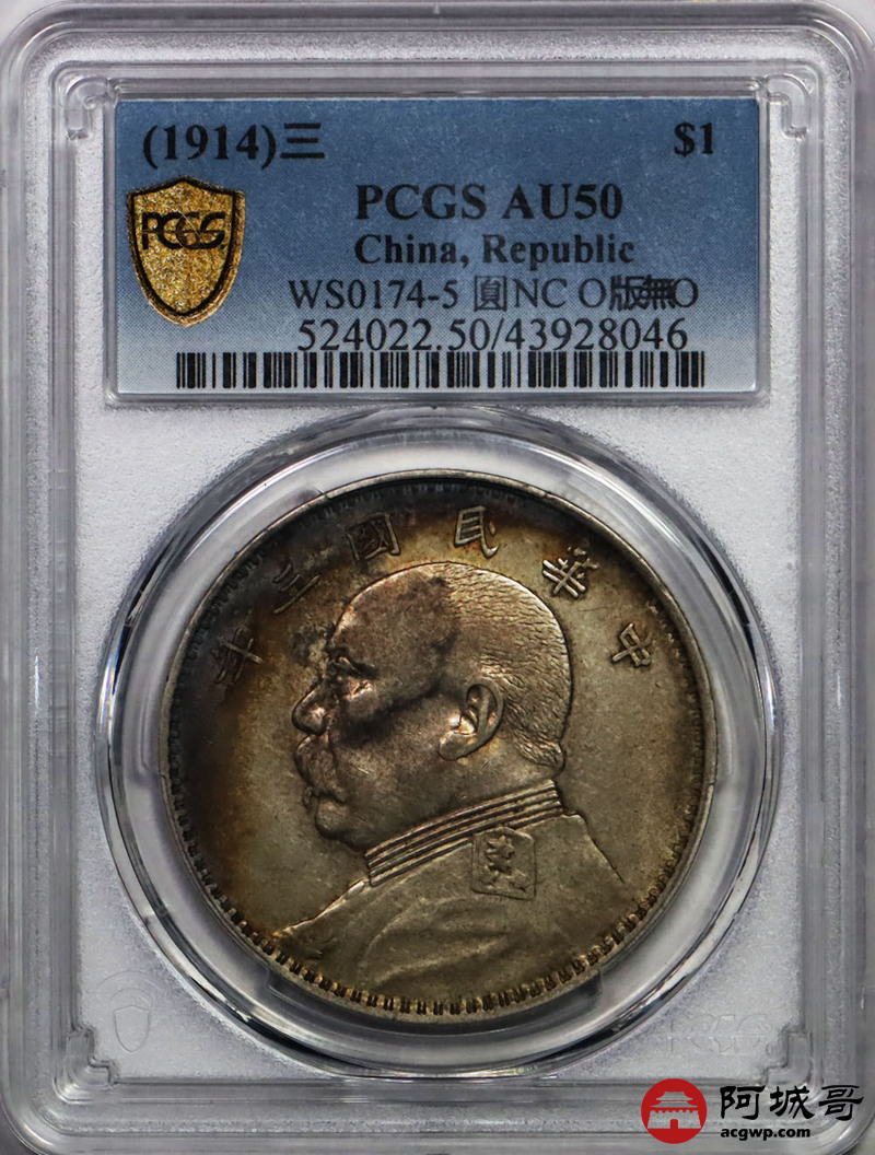 Lot:30 原味 包浆五彩 民国三年大头 O版无o PCGS AU 50