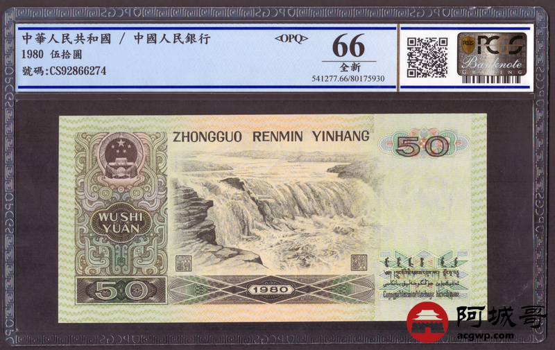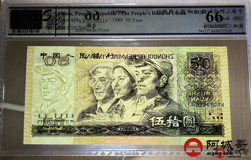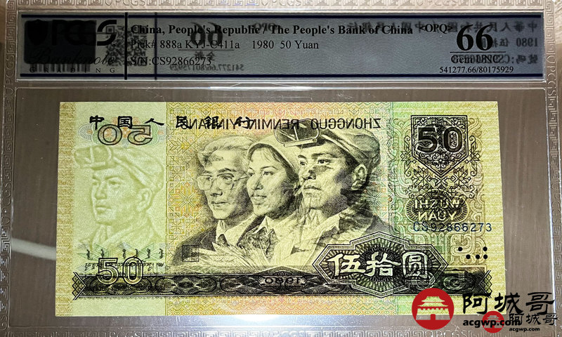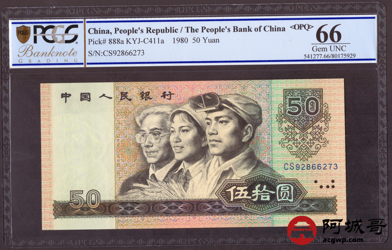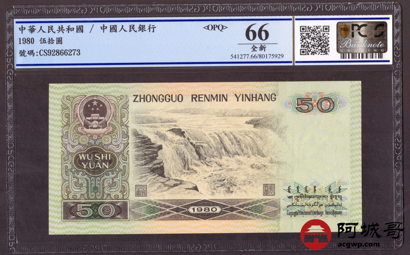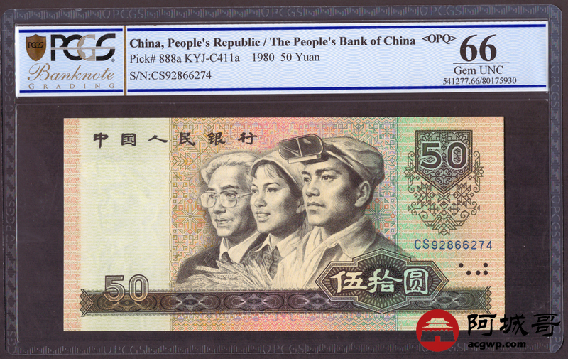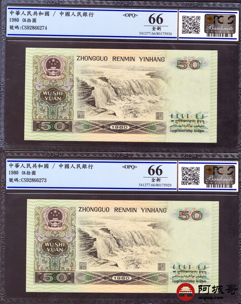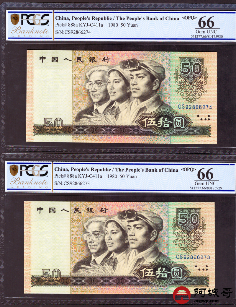Lot:24 四版1980年 伍拾圆 四版币王 PCGS 66OPQ 冠号CS 两张连号