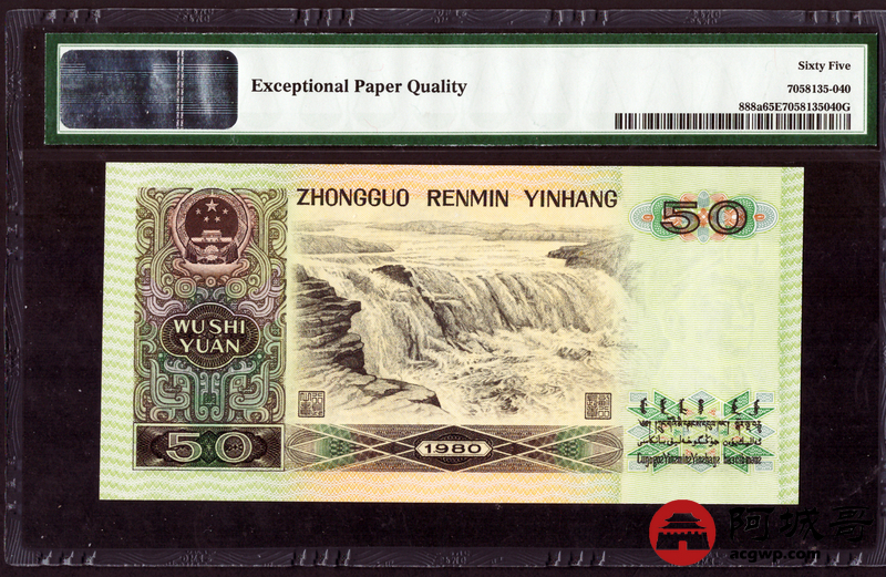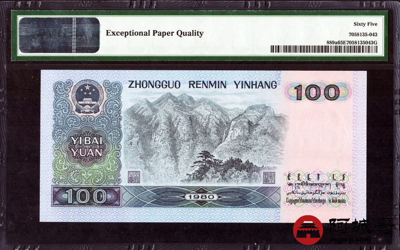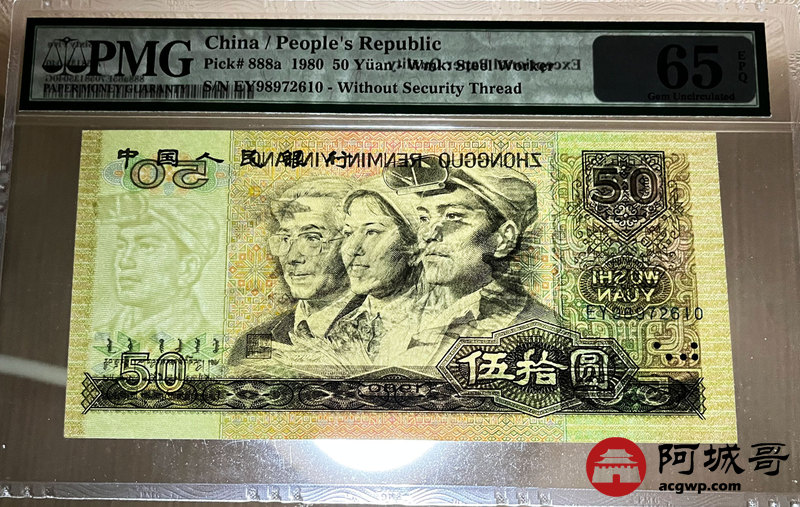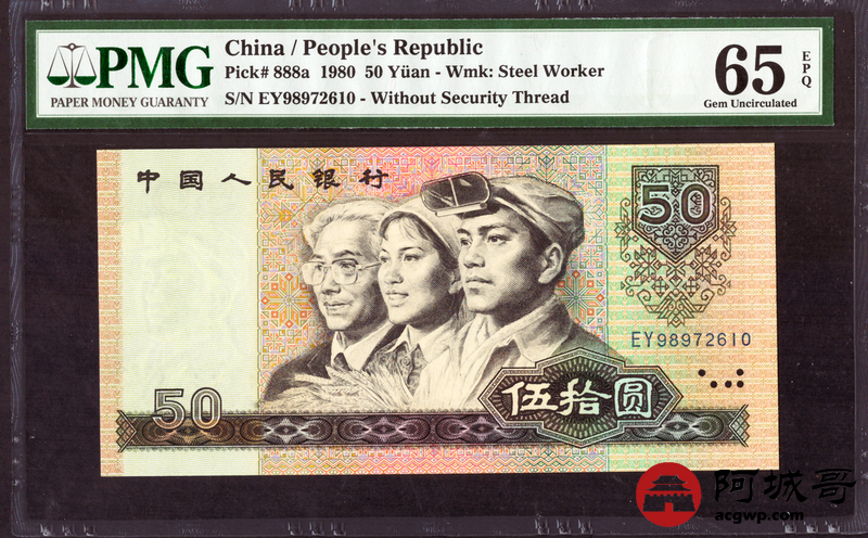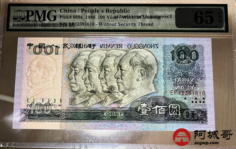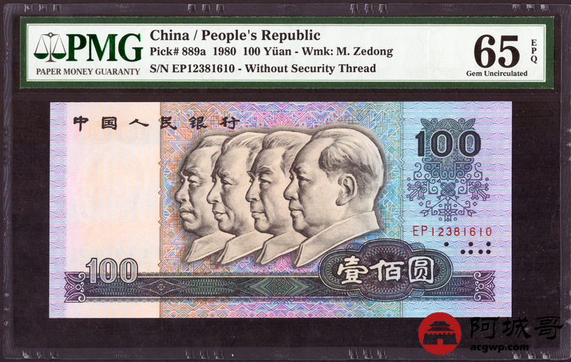 Lot:2 四版 1980年 壹百圆 PMG 65EPQ 好号无47 ;1980年 伍拾圆 四版币王 PMG 65EPQ 好号无4 两枚一组 尾三同