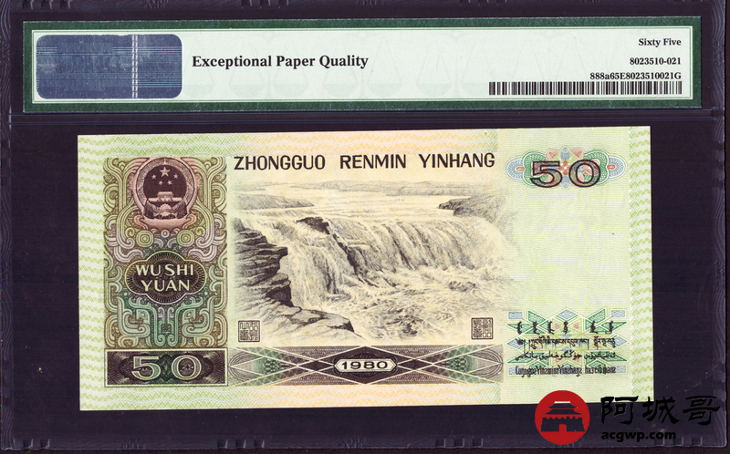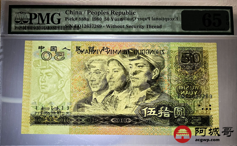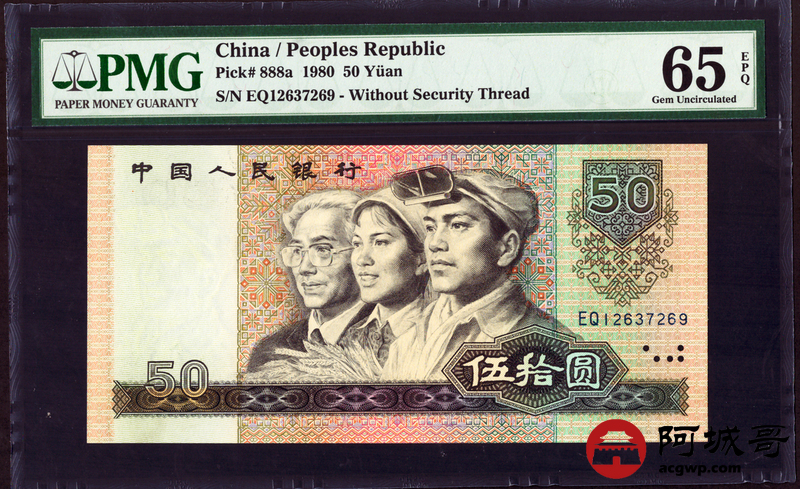 Lot:26 四版 1980年 伍拾圆 四版币王 PMG 65EPQ 好号无4 冠号EQ
