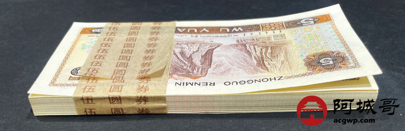 Lot:3 四版 1980年 伍圆 一刀 原票 97至全新 好号无347