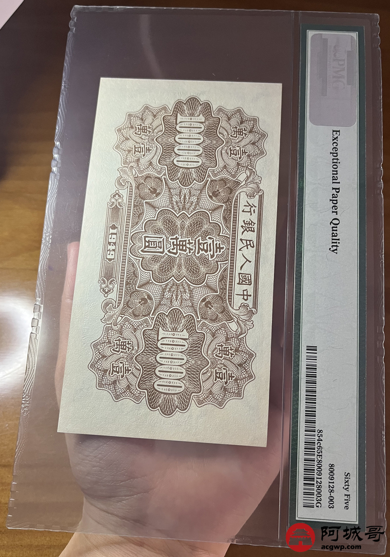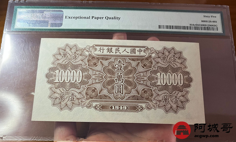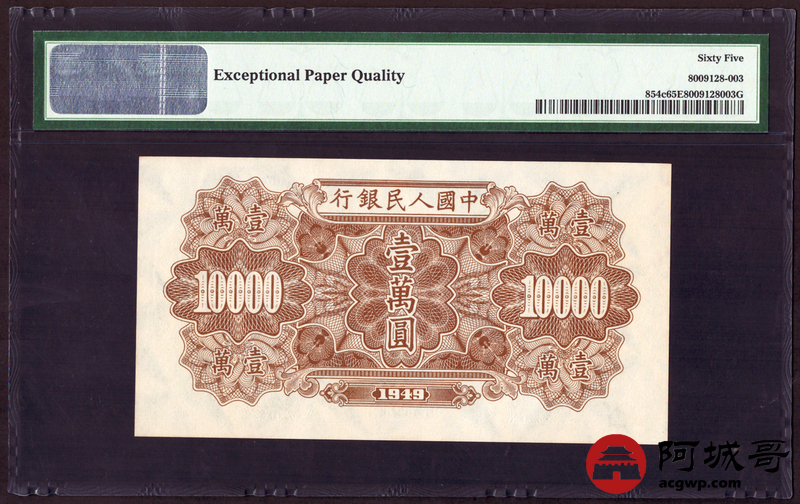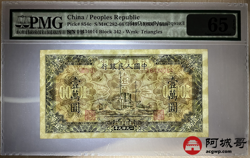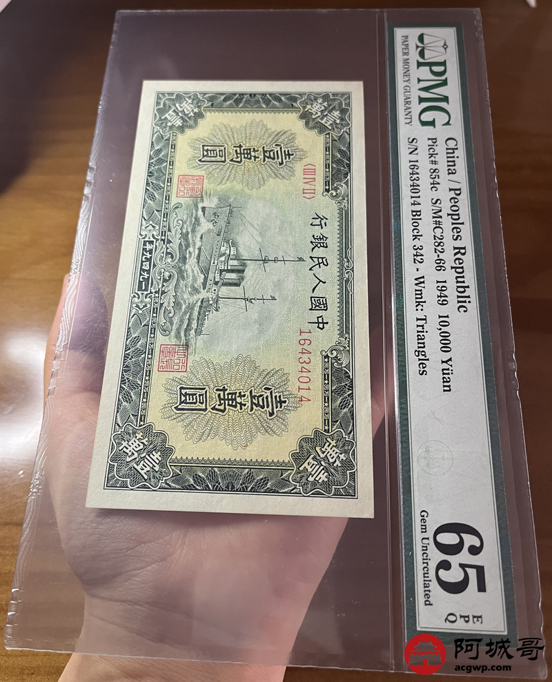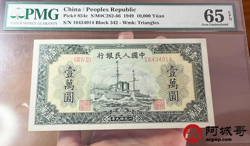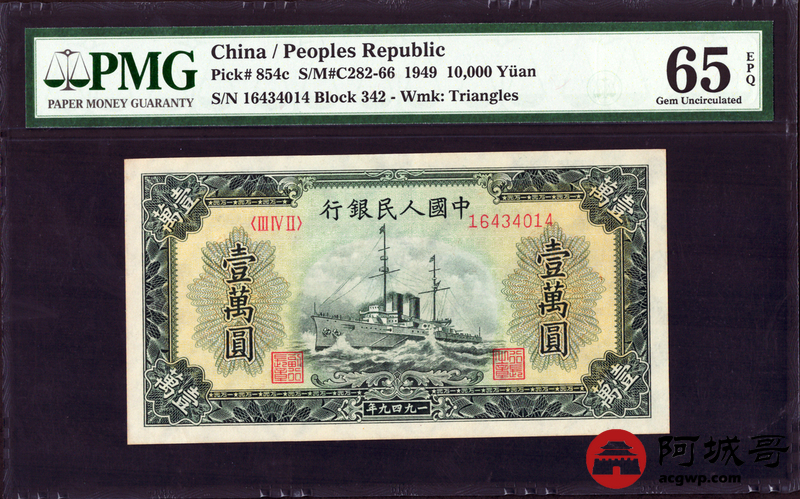 Lot:7 一版 1949年 壹萬圆军舰 菱花水印 PMG 65EPQ