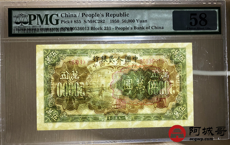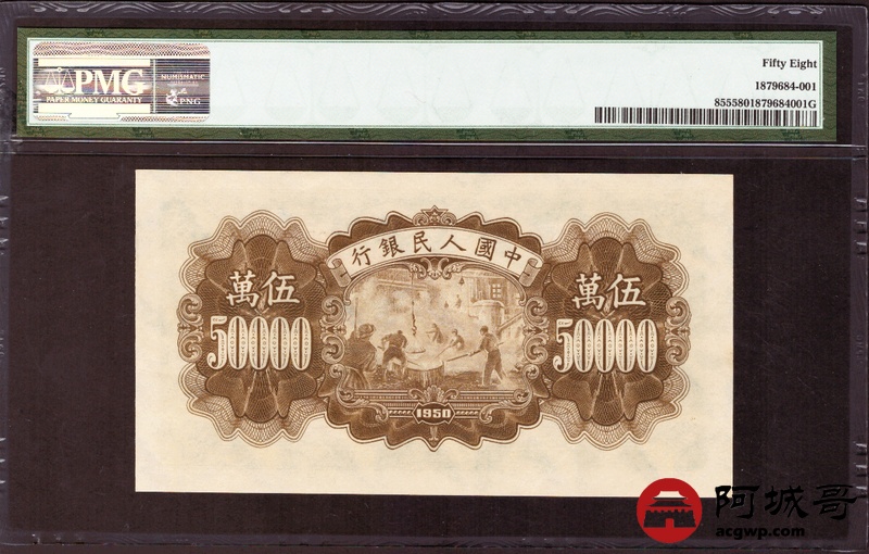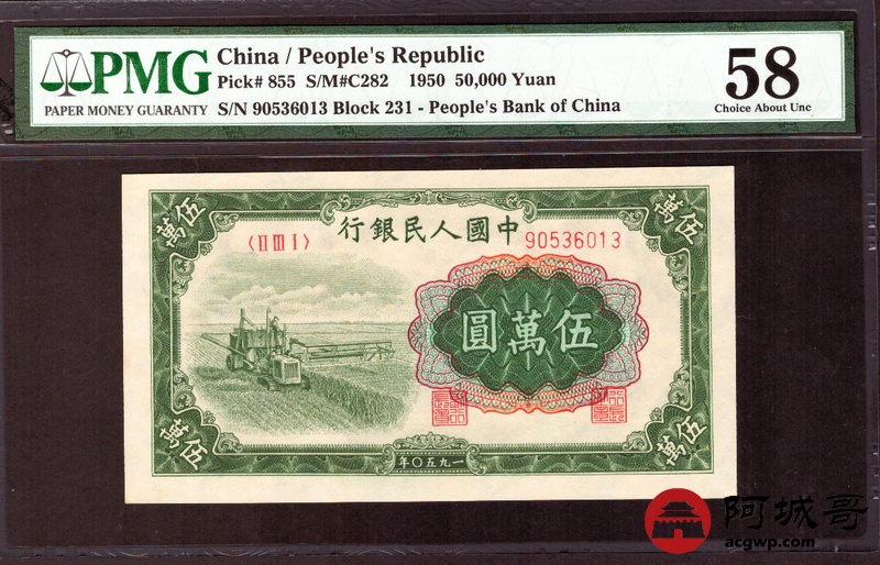 Lot:17 一版 1950年 伍萬圆收割机 好号无47 PMG 58 一版12珍