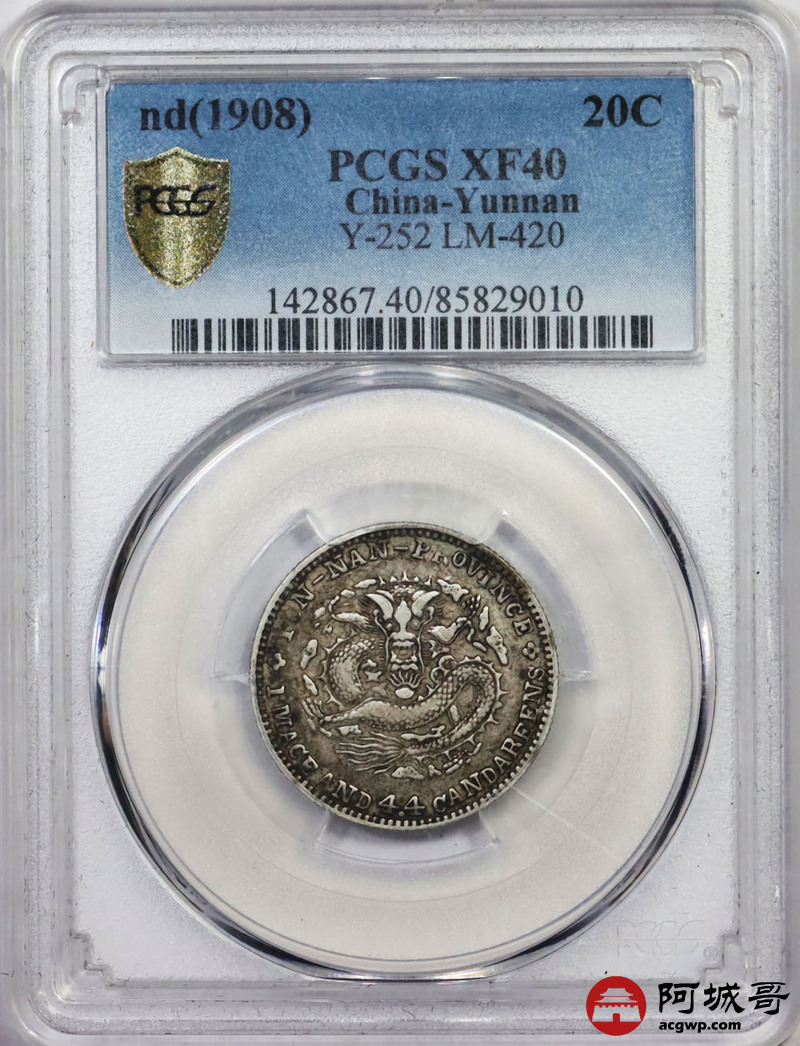 Lot:10 老包浆老云南光绪贰角 PCGS XF40