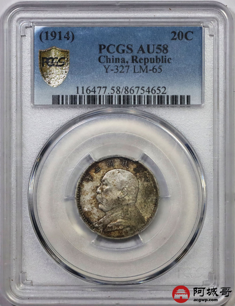 Lot:18 黄油彩三年大头贰角 PCGS AU58