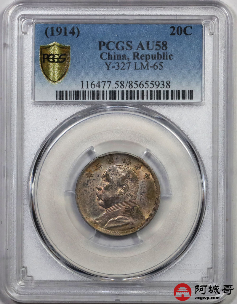Lot:9 五彩光三年大头贰角 PCGS AU58